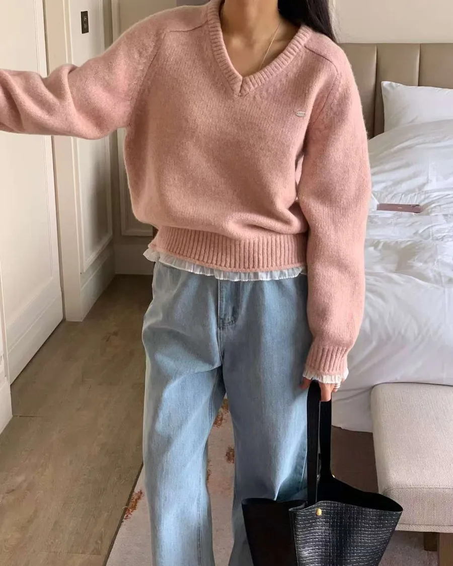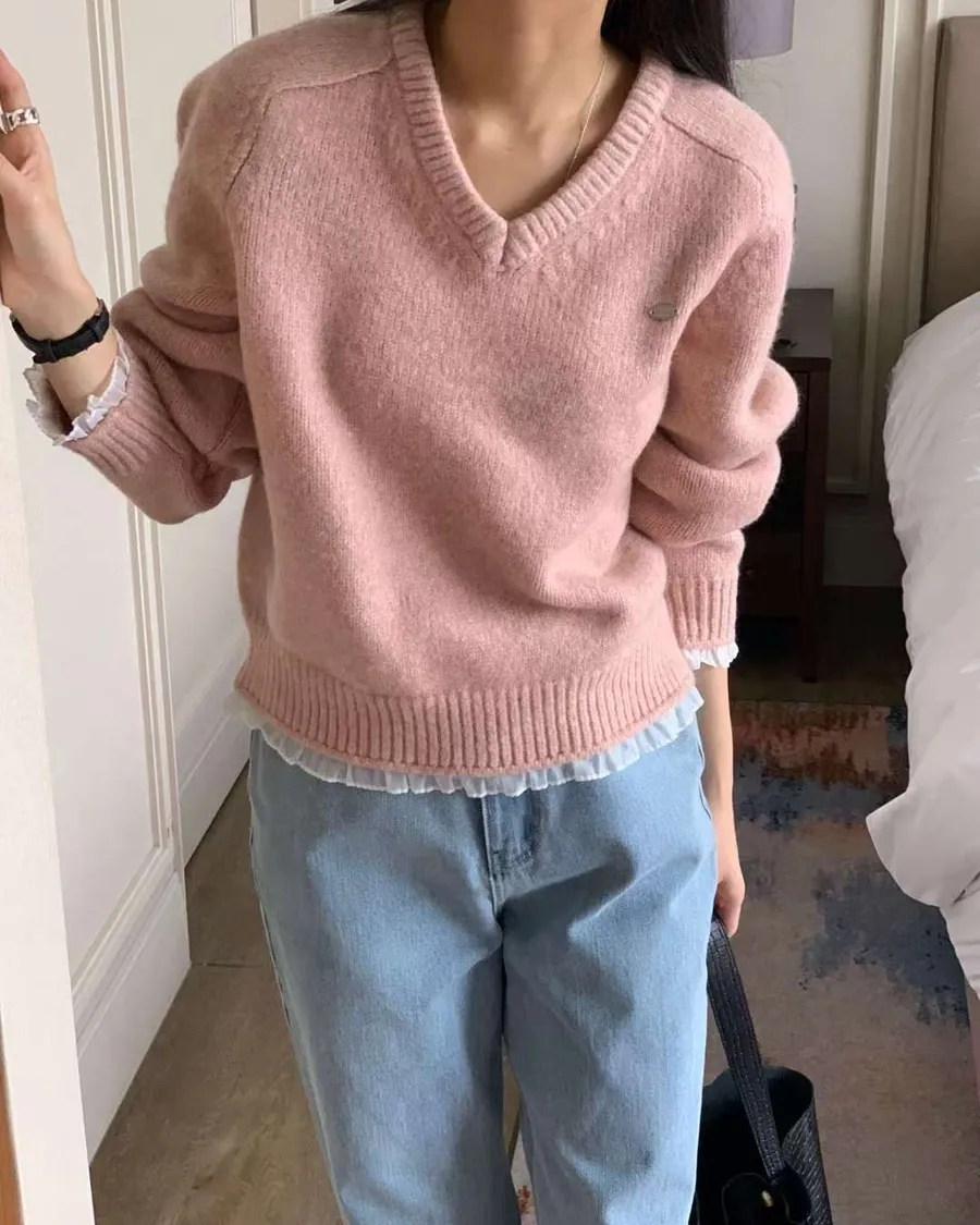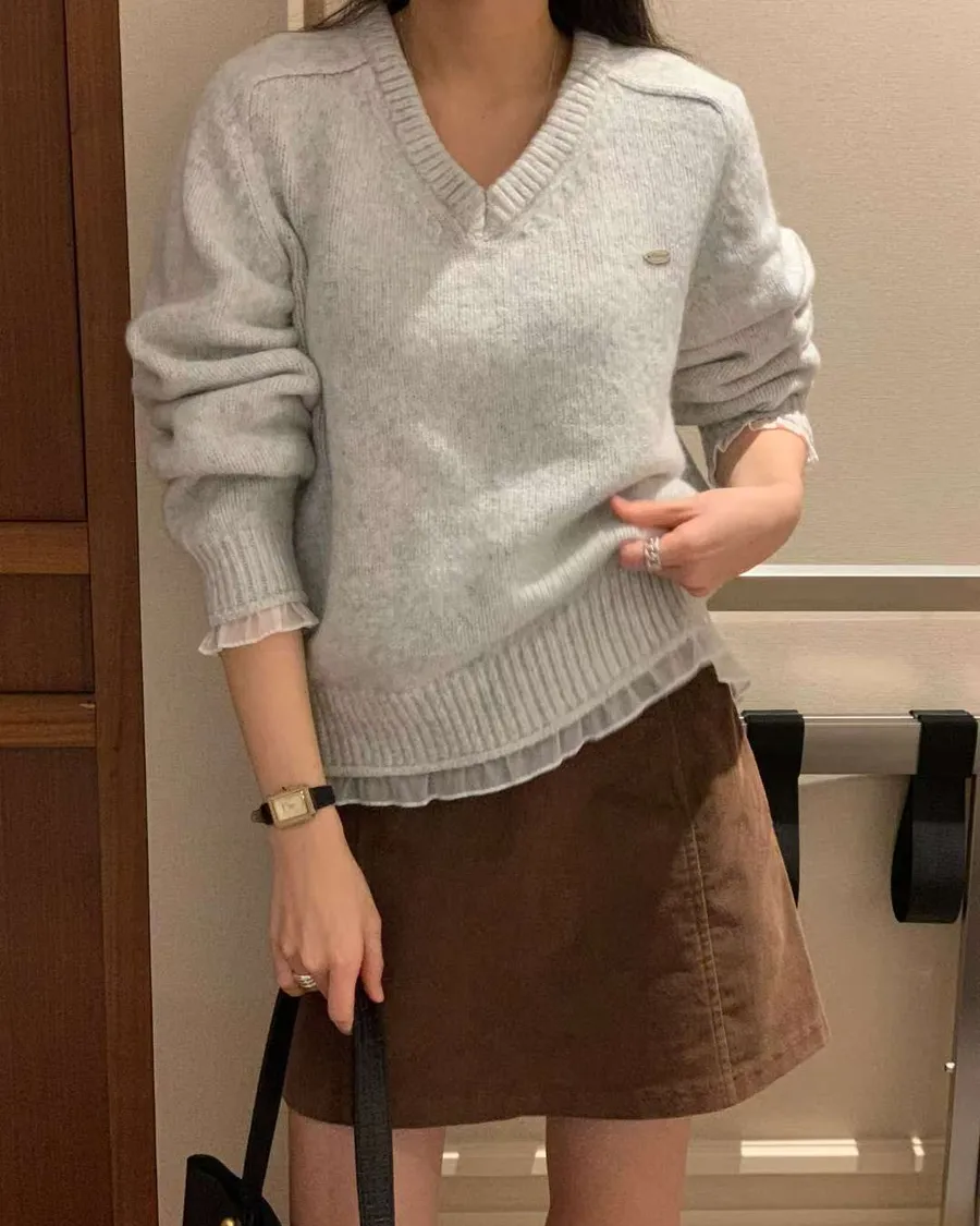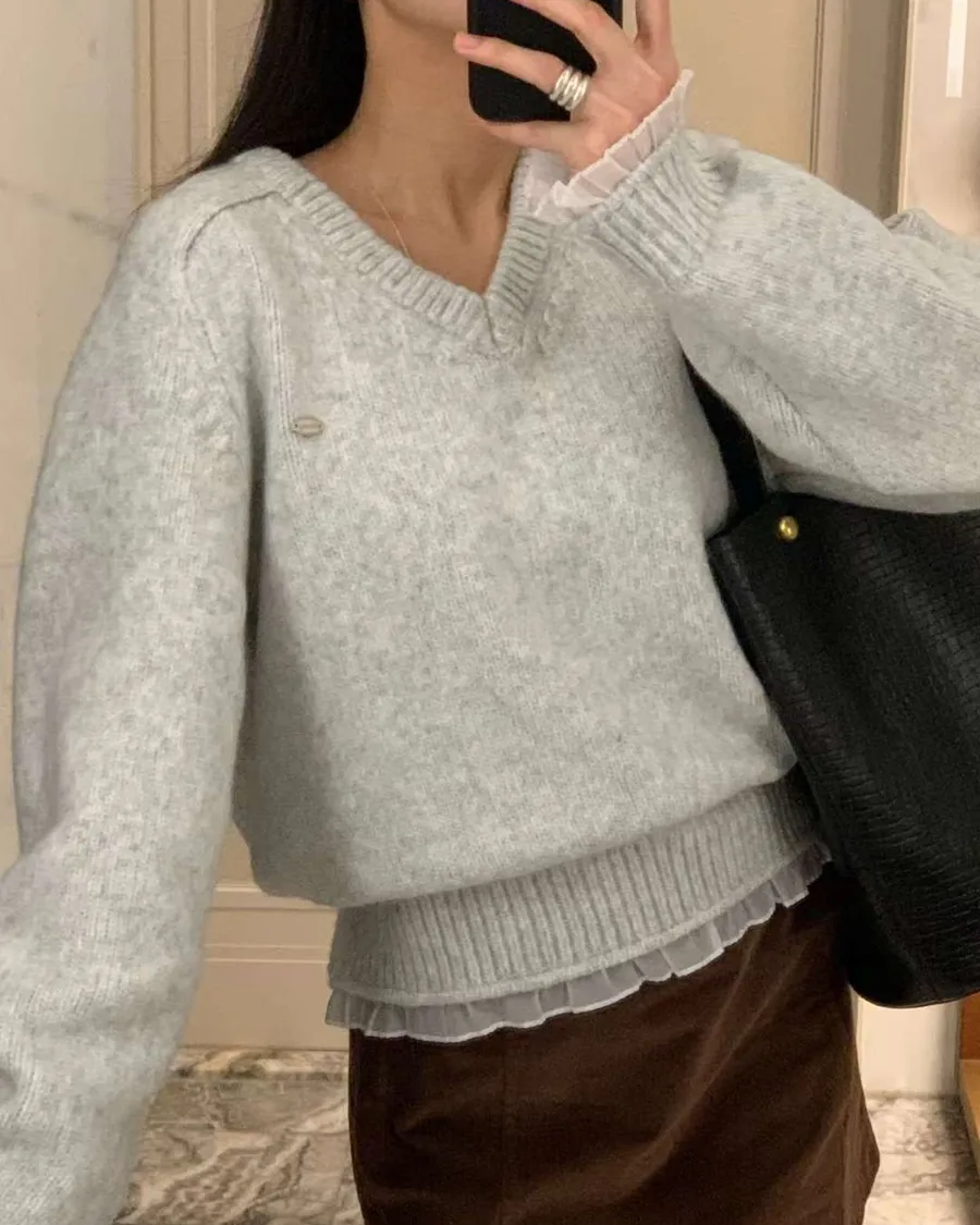 搭配內搭的蕾絲花邊,讓整體造型更添甜美細節。