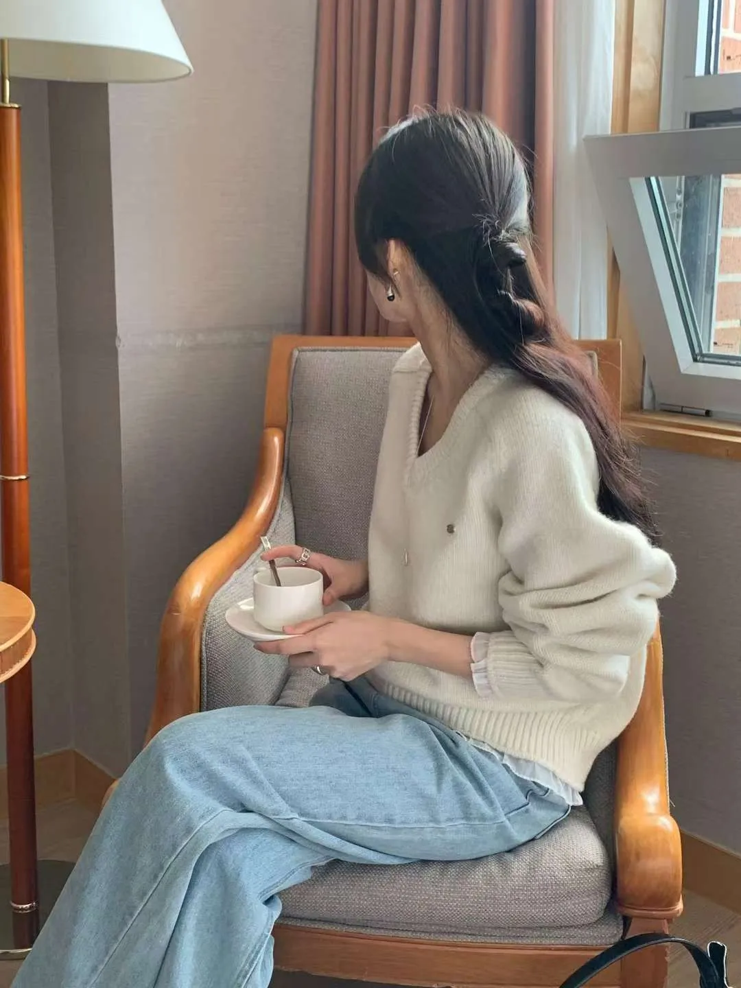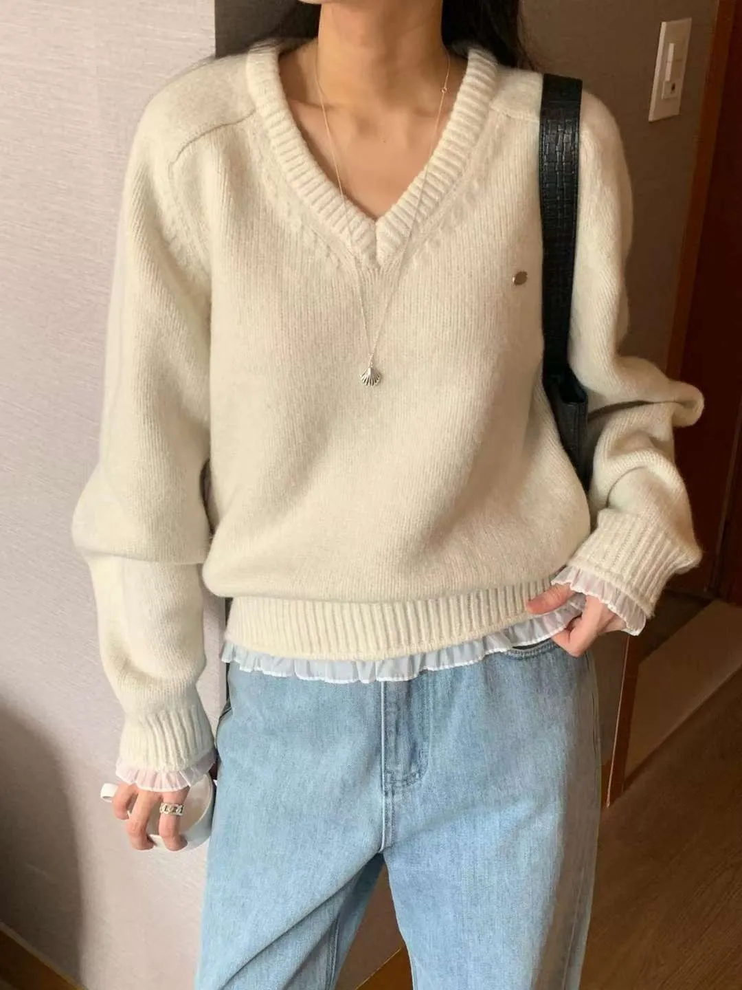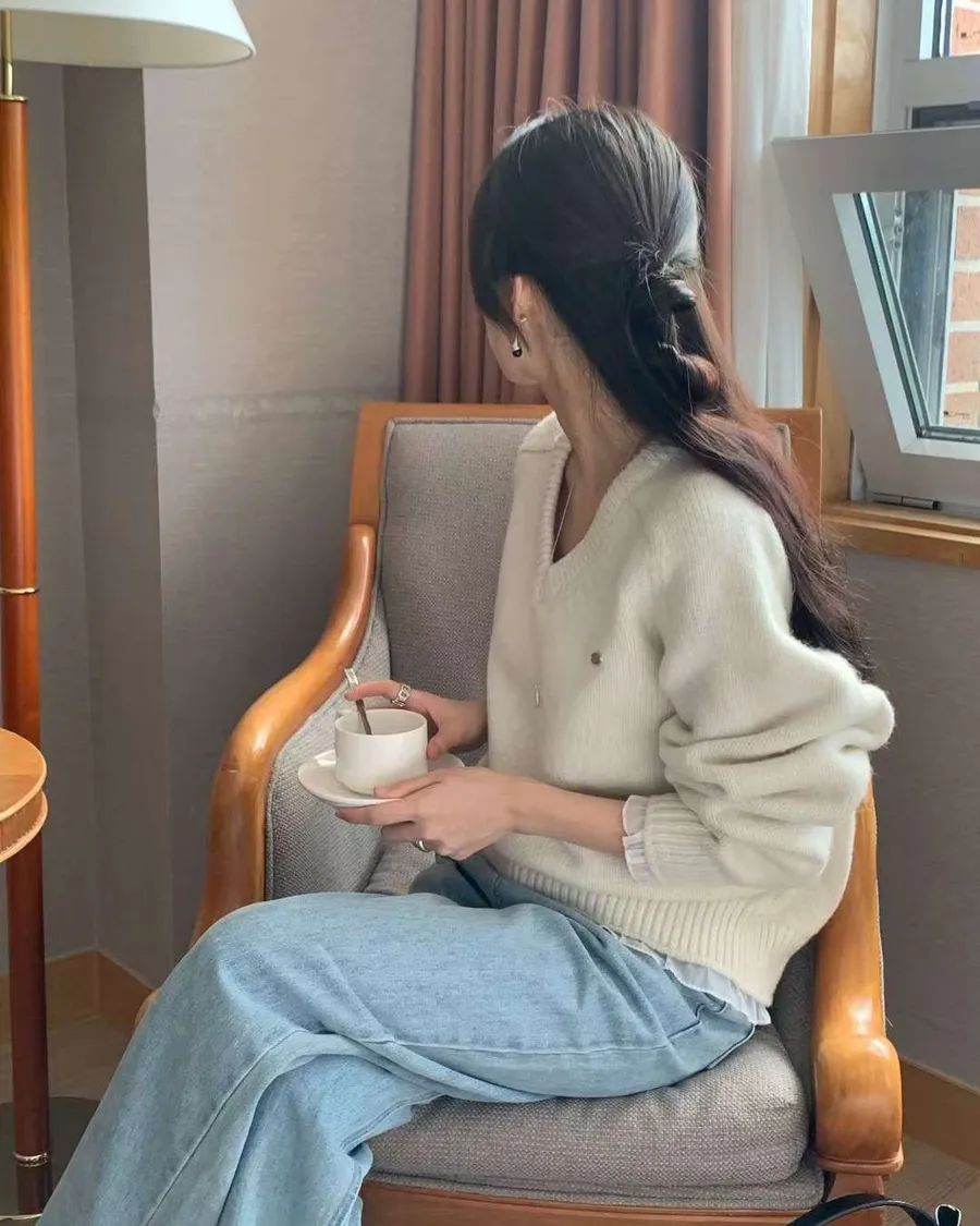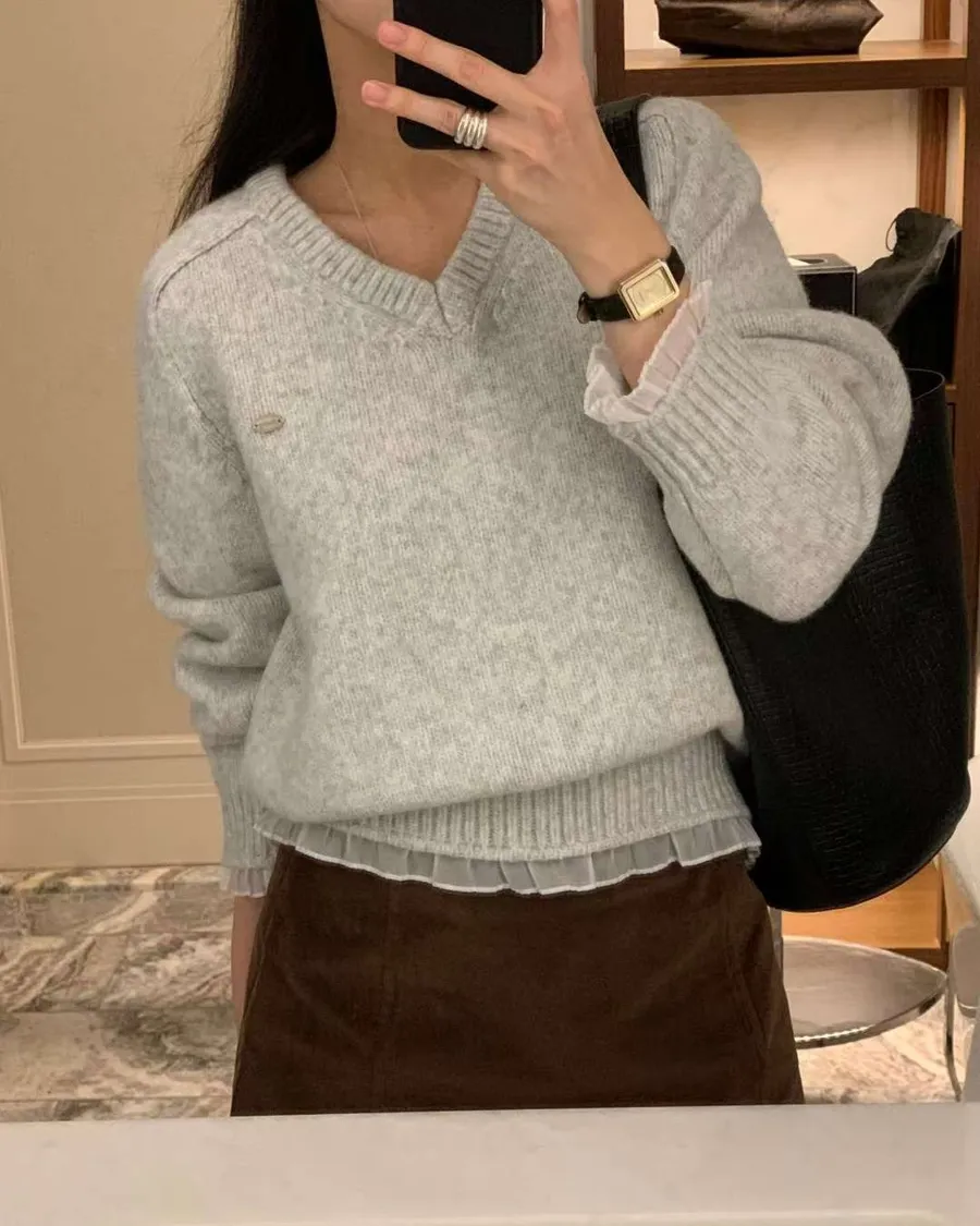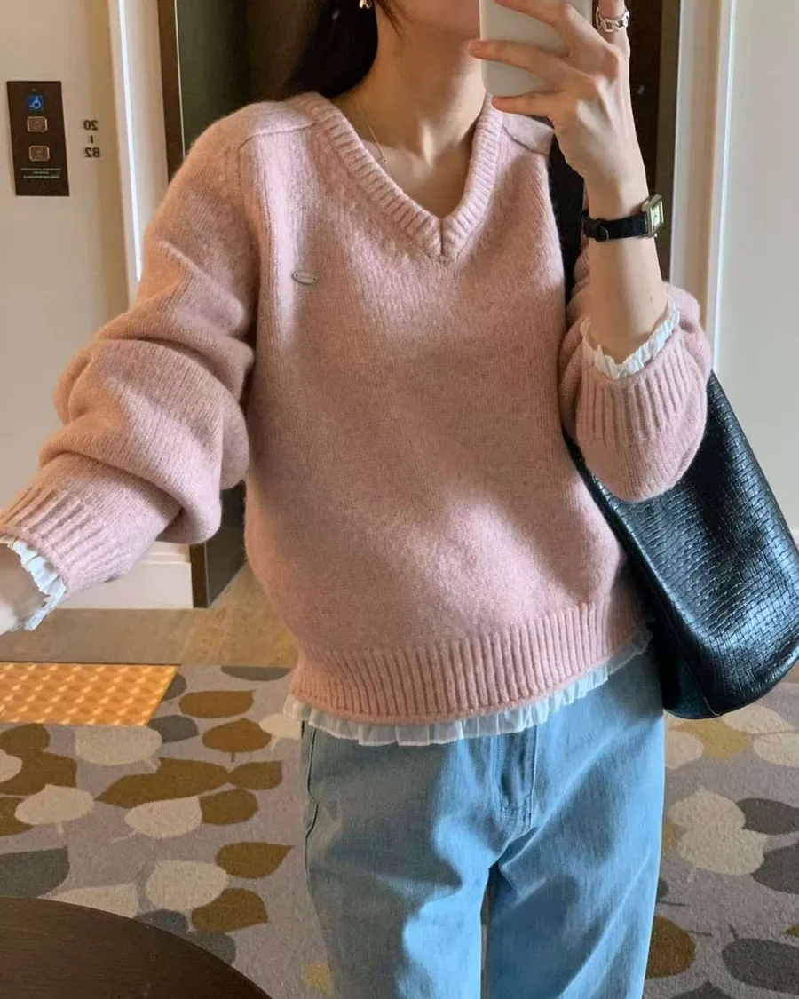 搭配內搭的蕾絲花邊,讓整體造型更添甜美細節。