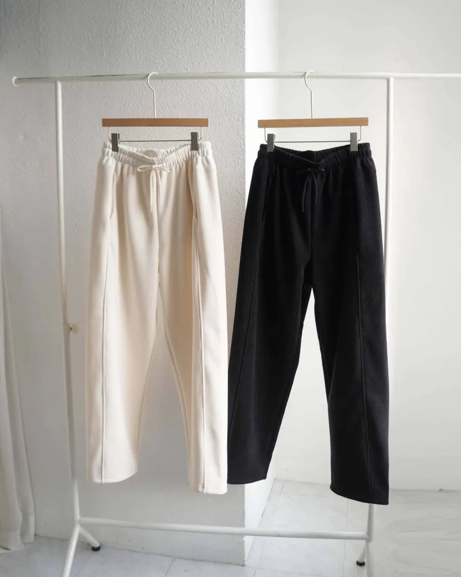 正韓Nature 厚磅直條羅紋筒銜褲