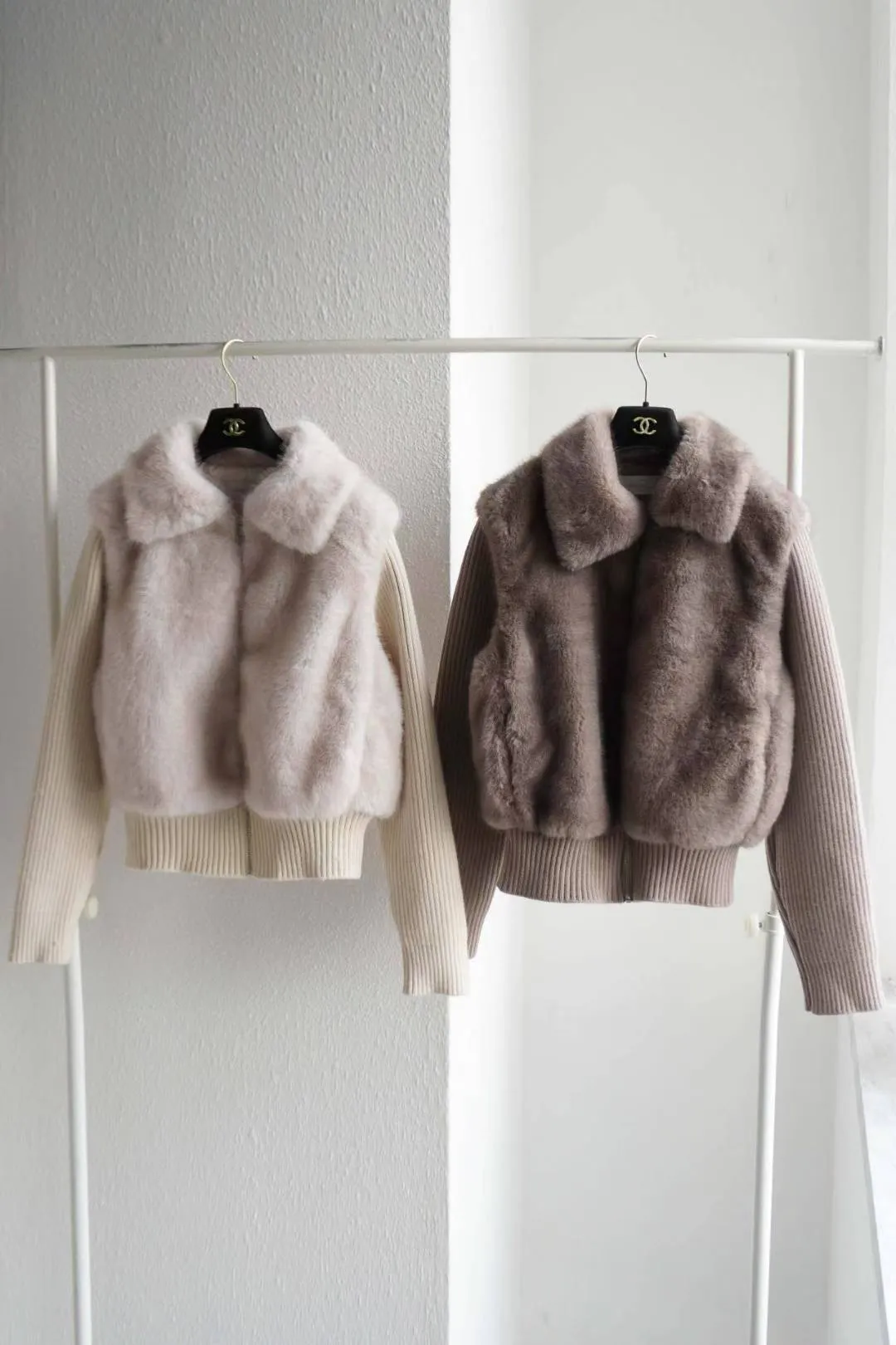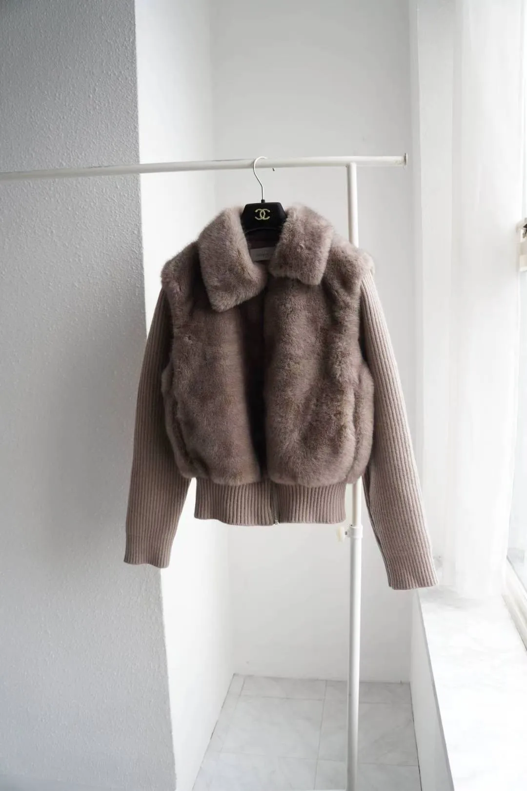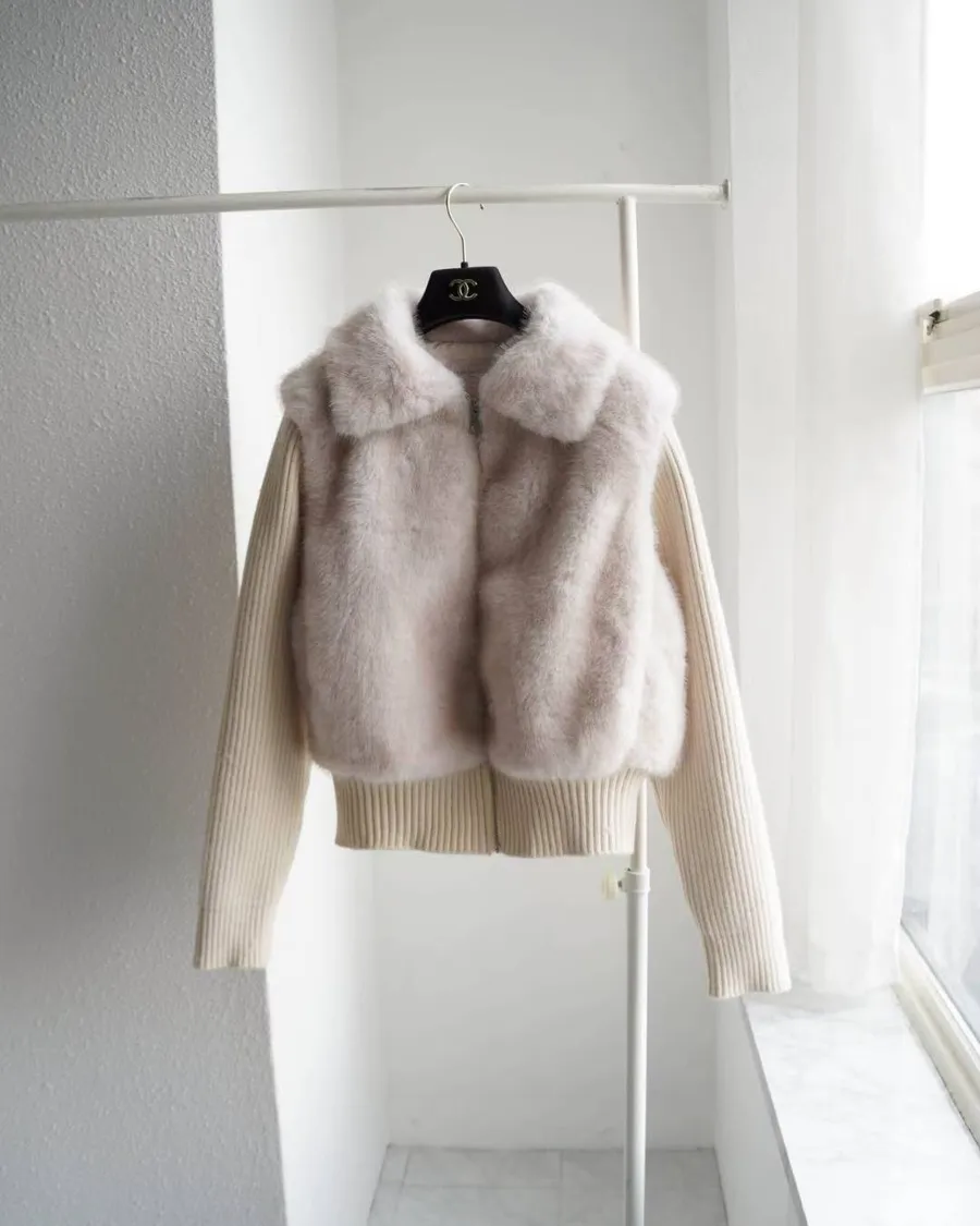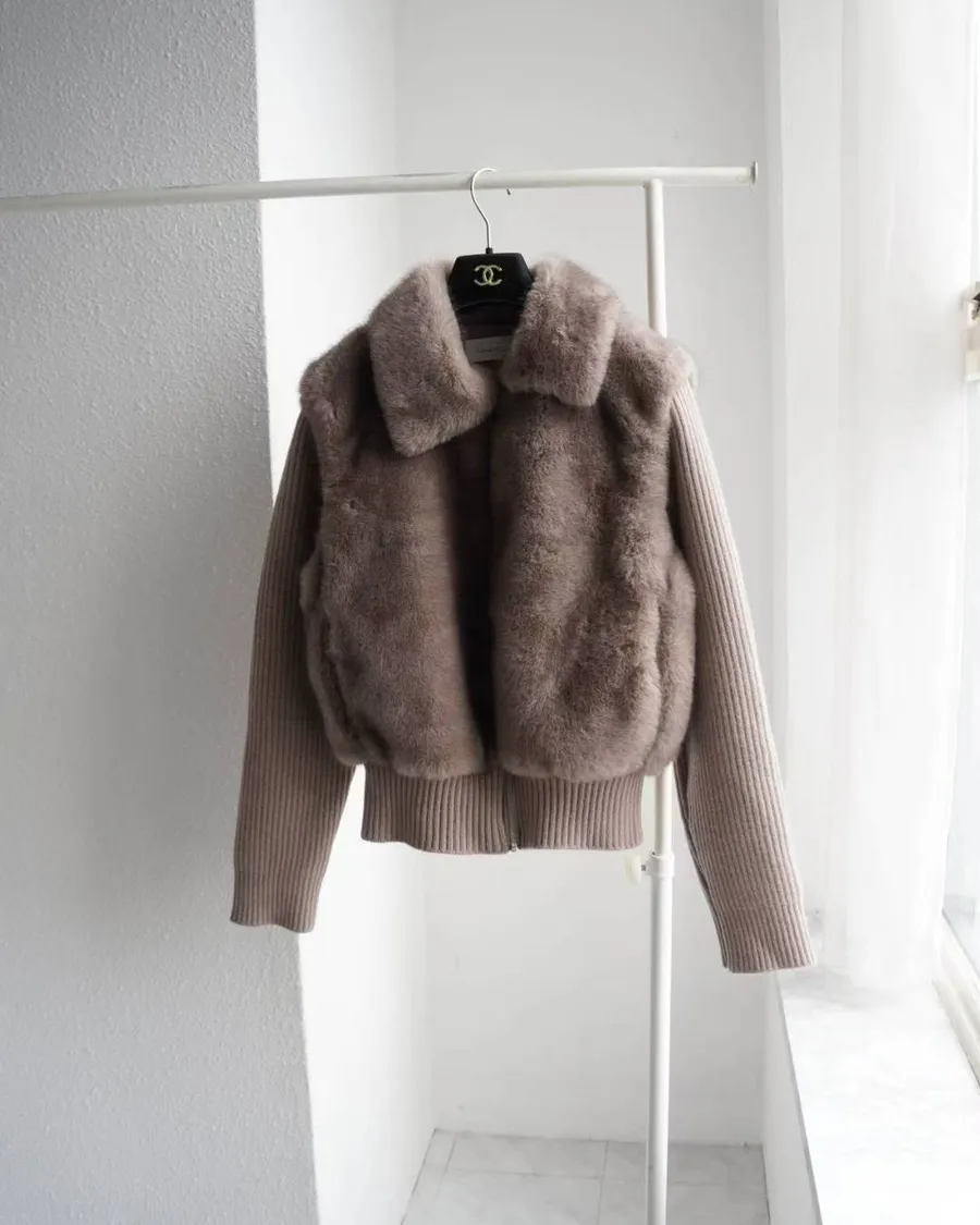 超柔軟的皮草感毛絨+針織袖拼接,穿起來貴氣但不厚重。