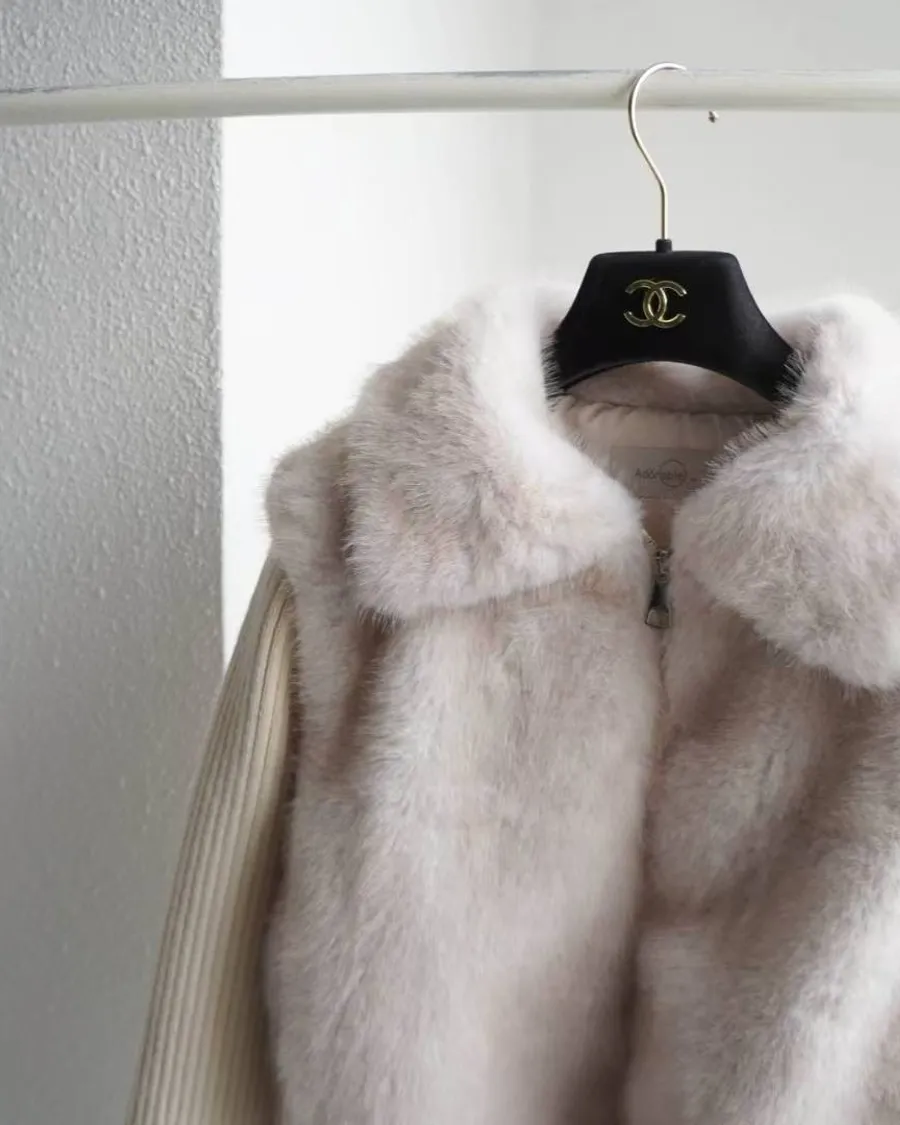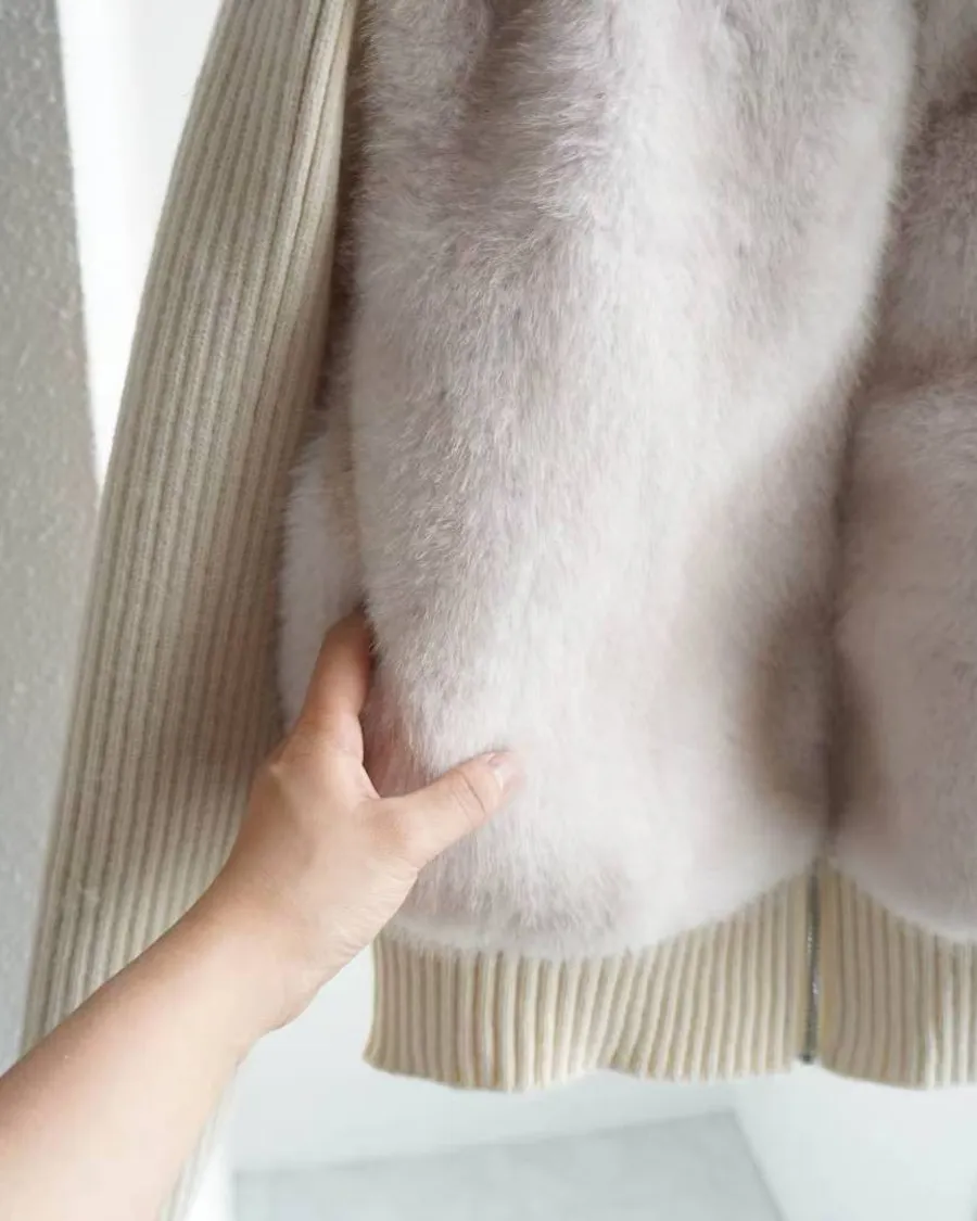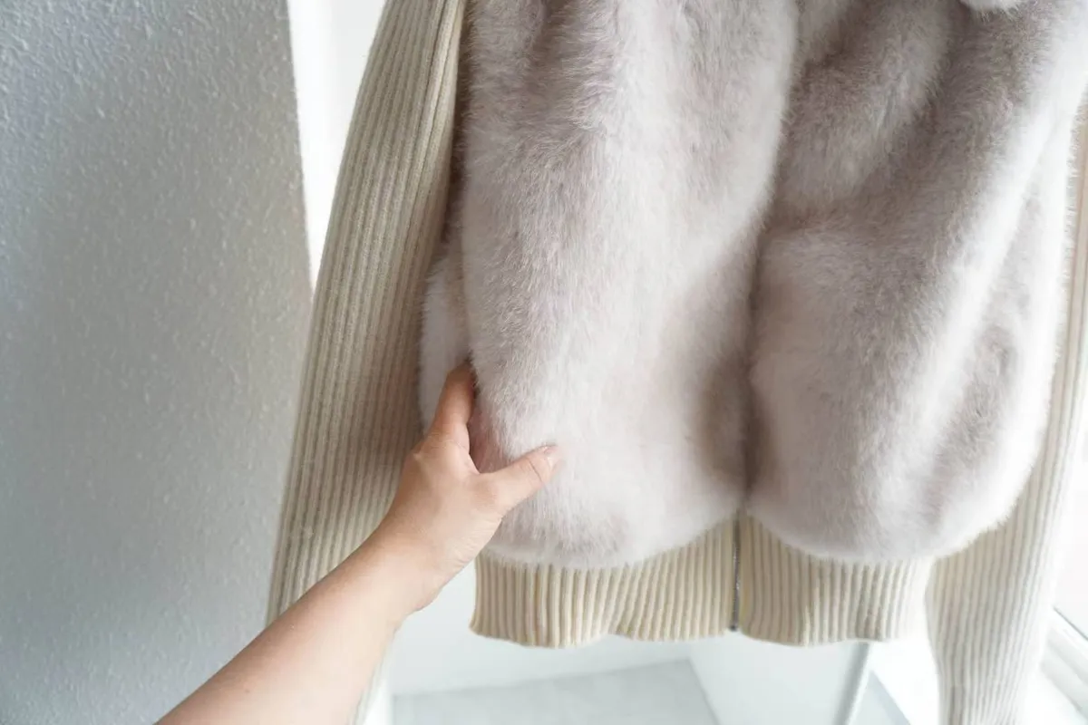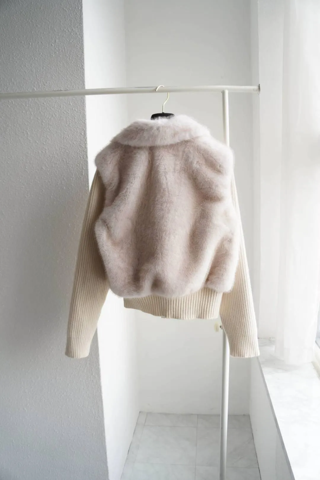 超柔軟的皮草感毛絨+針織袖拼接,穿起來貴氣但不厚重。