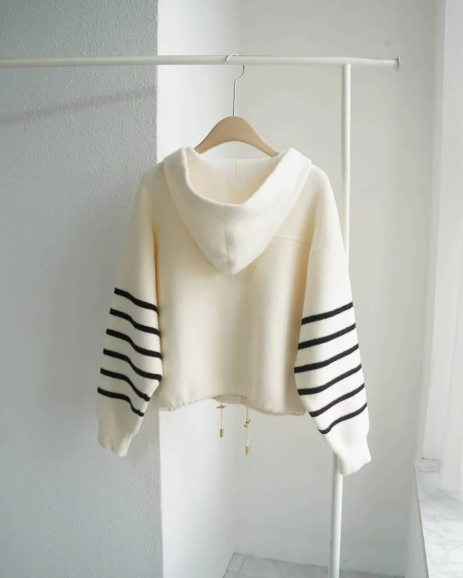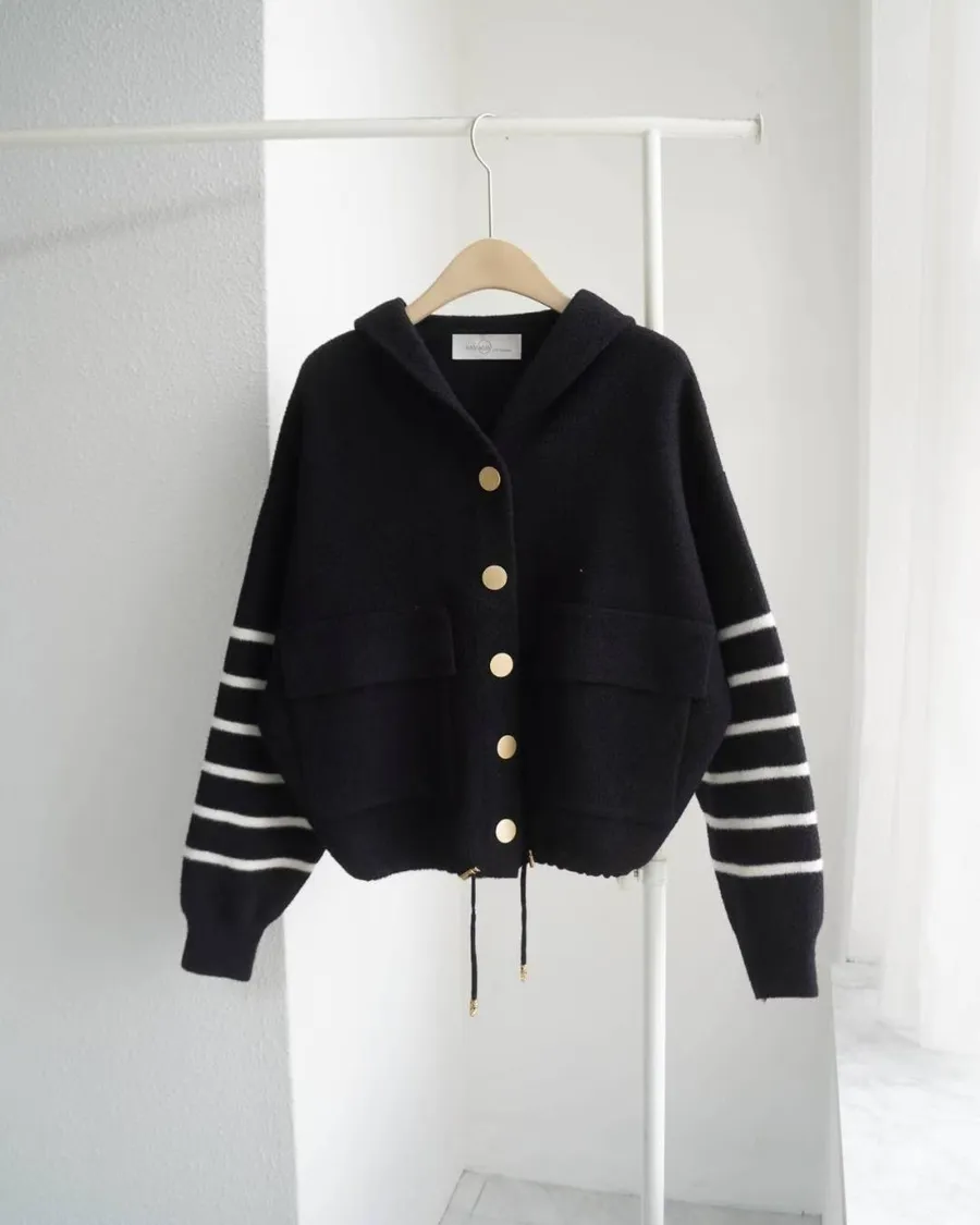 韓系感滿滿的「連帽針織短版外套」