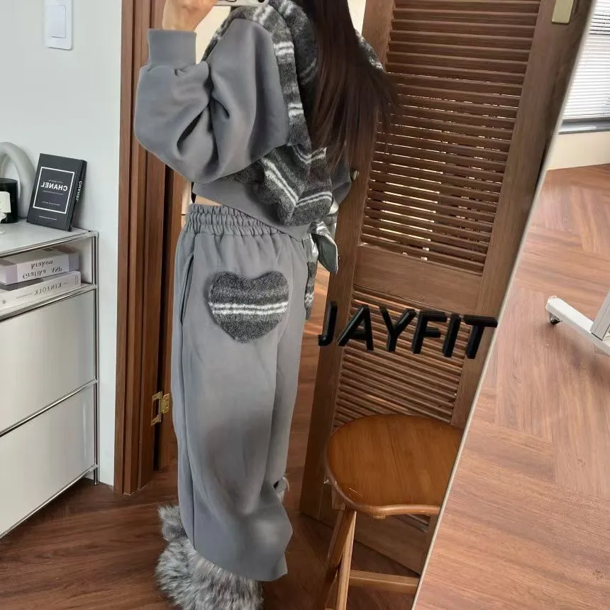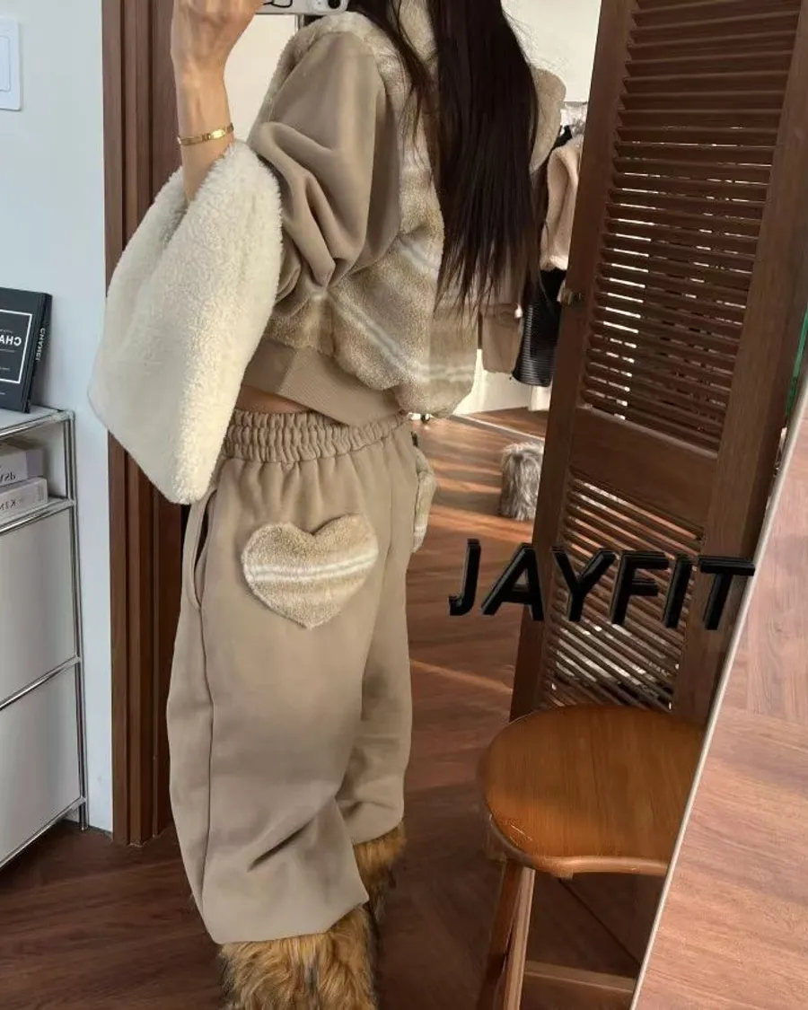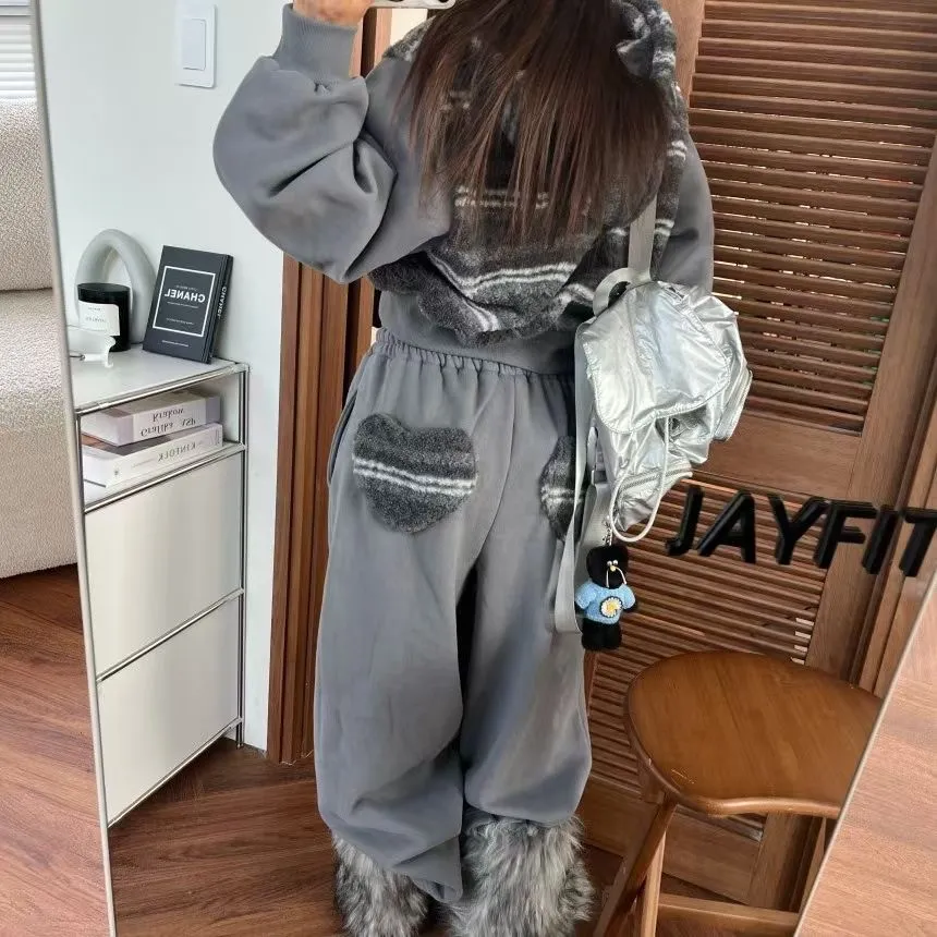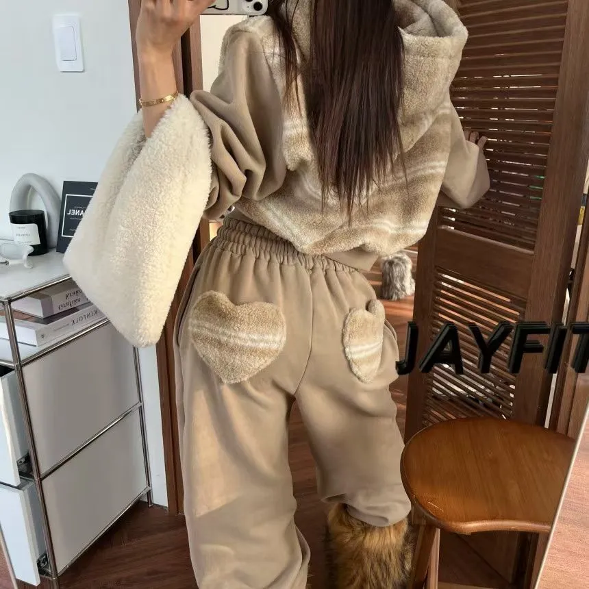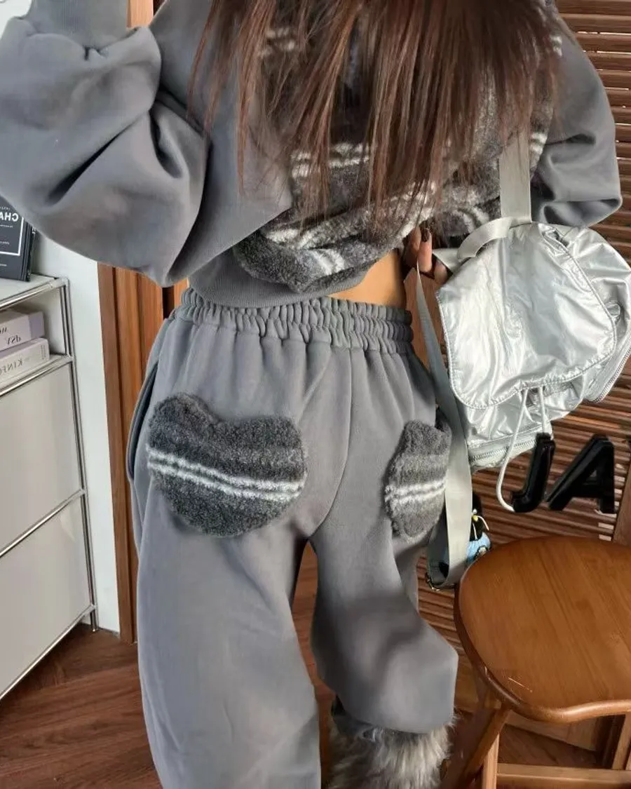 正韓 Nature 韓系奶霜感「愛心刷毛連帽套裝」|上衣
