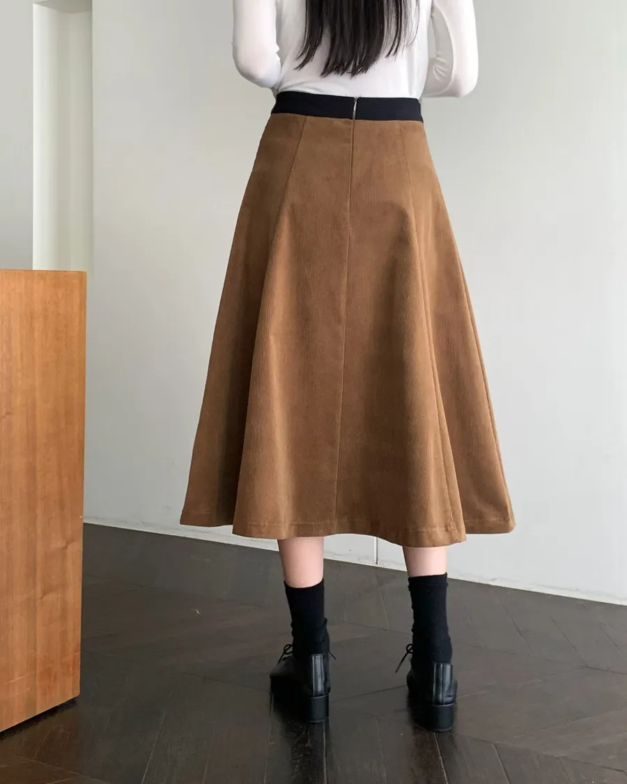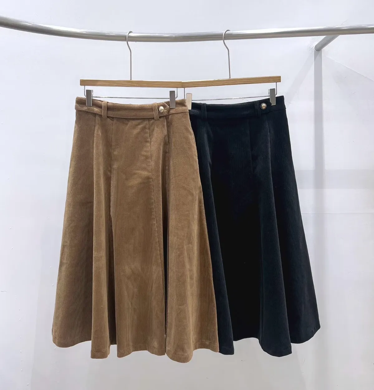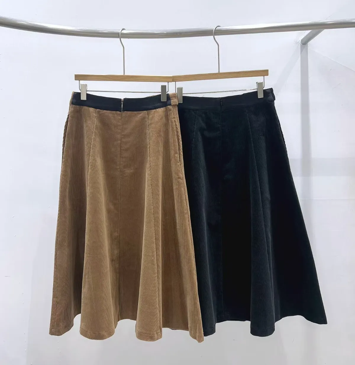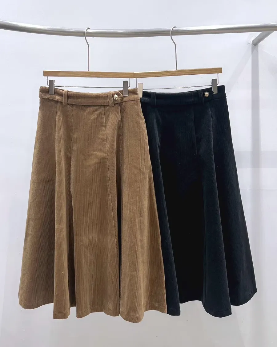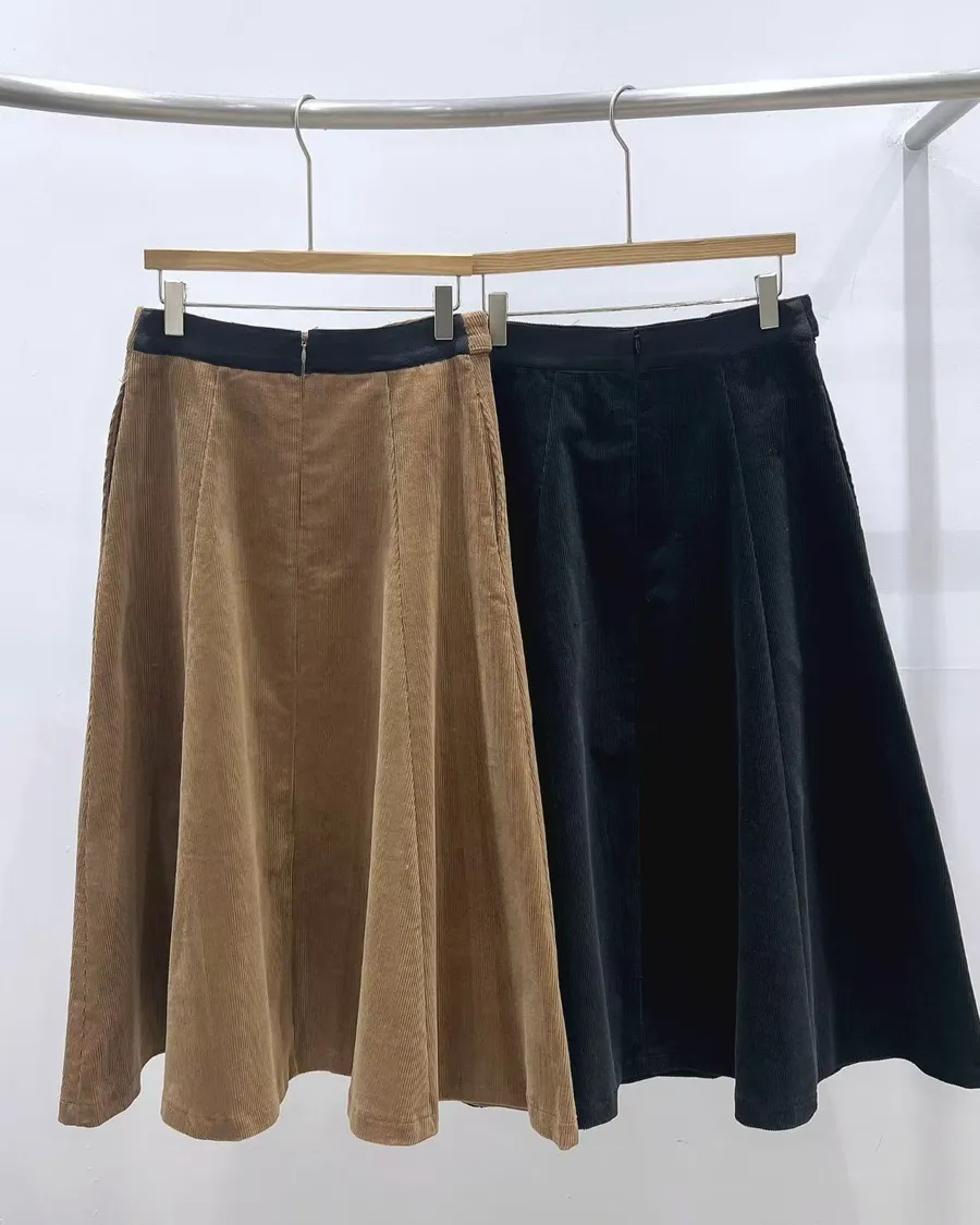 正韓 Nature 韓系燈芯絨高腰A字中長裙