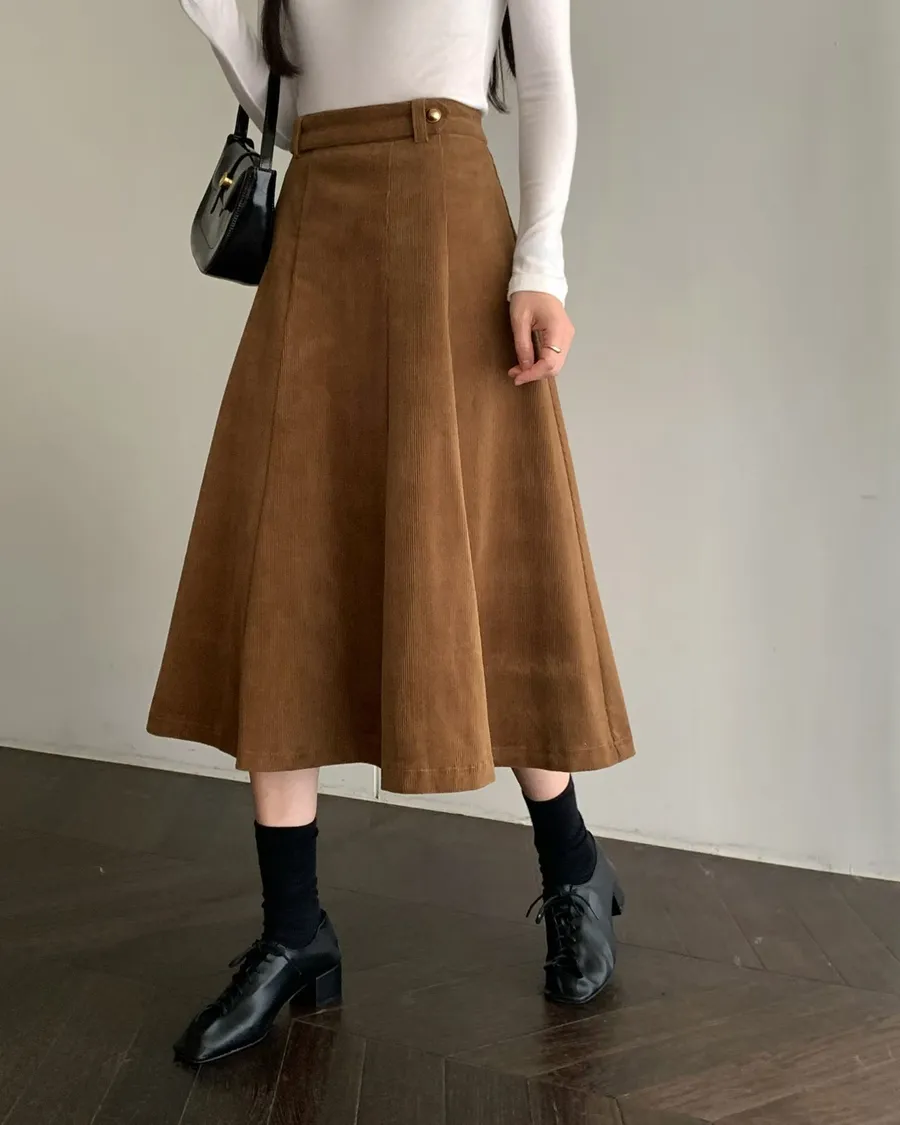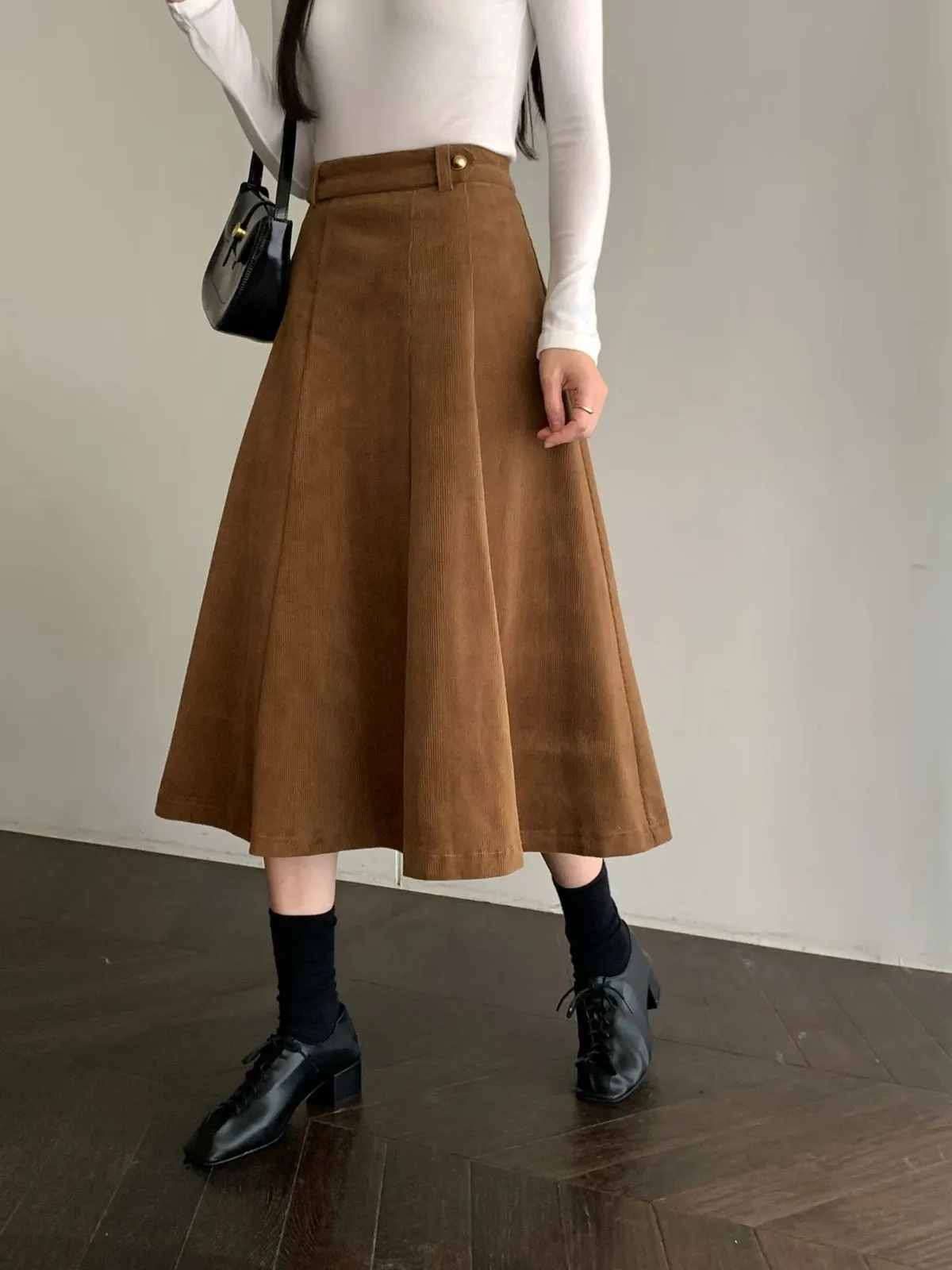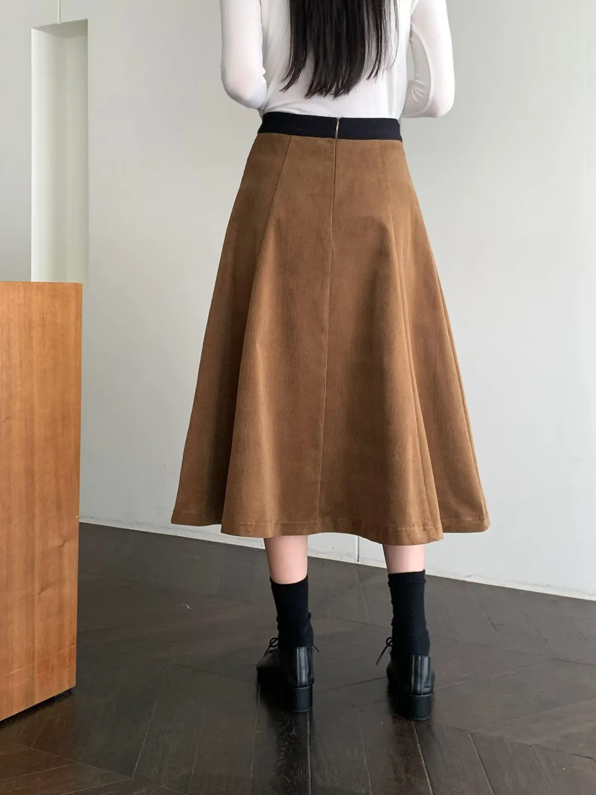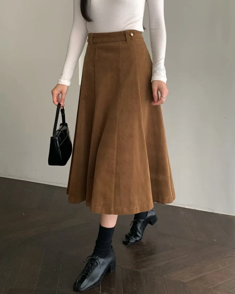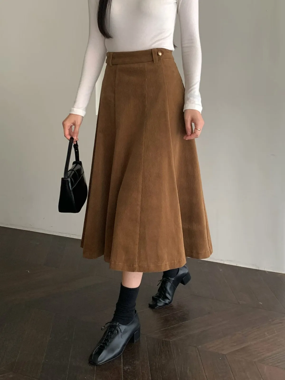 正韓 Nature 韓系燈芯絨高腰A字中長裙