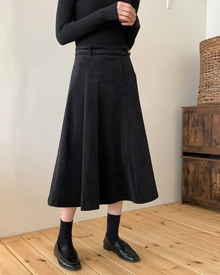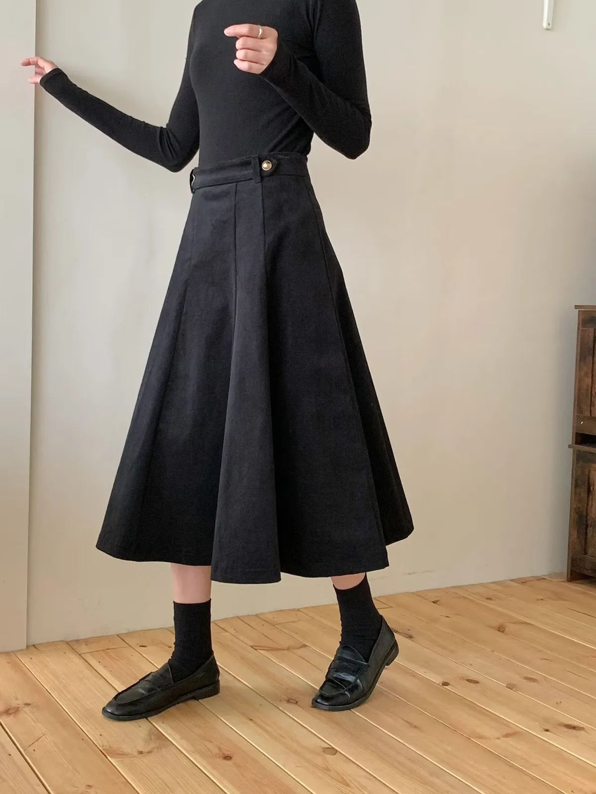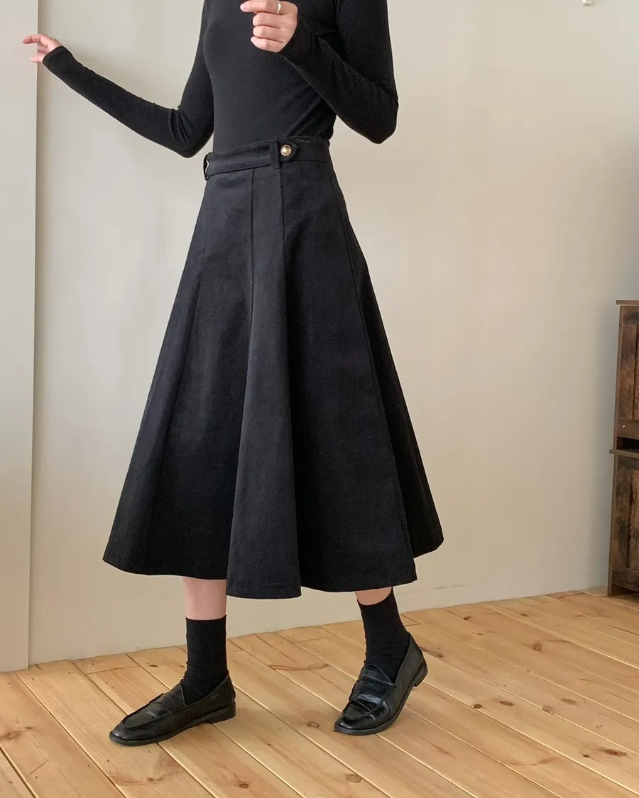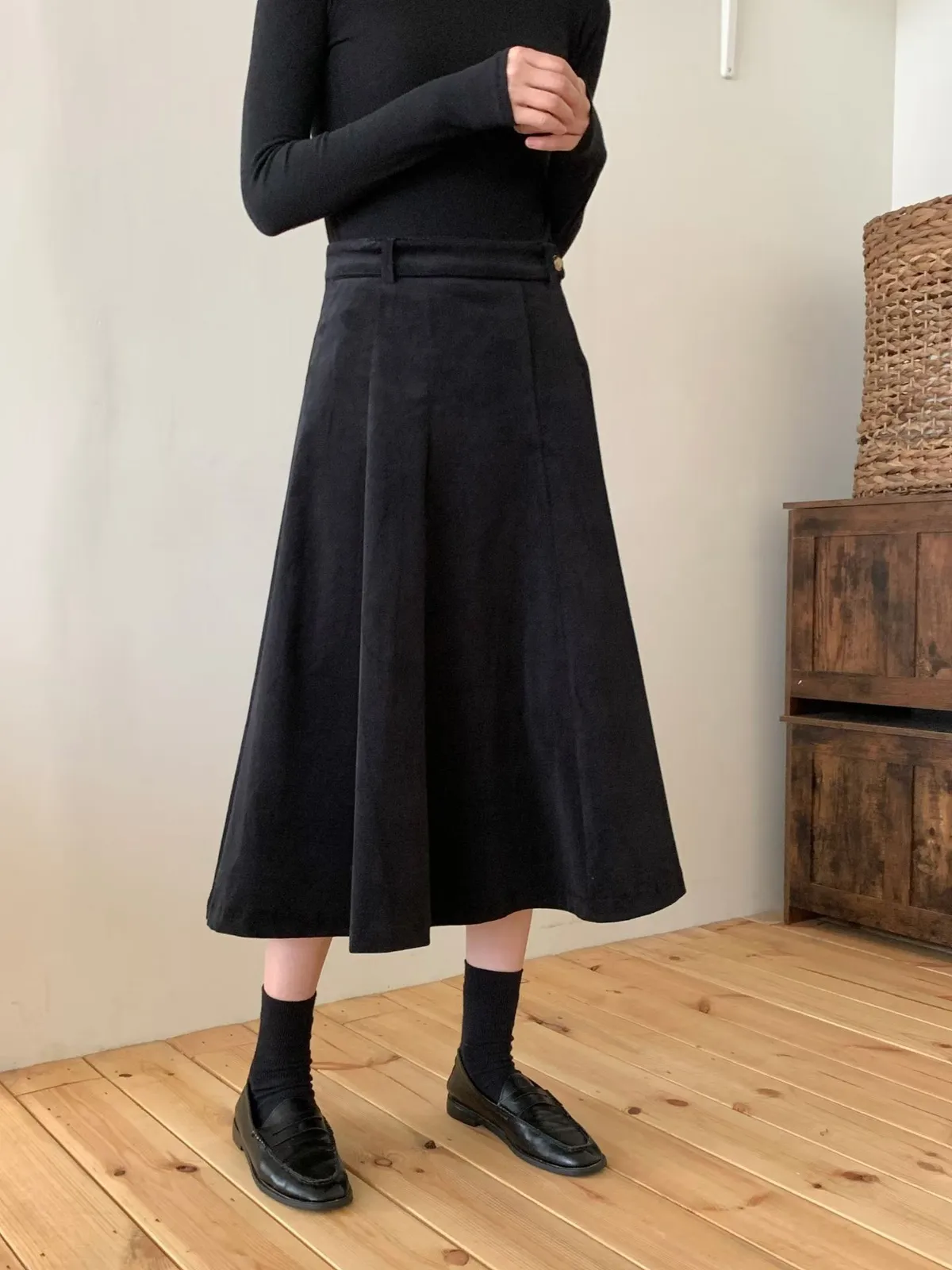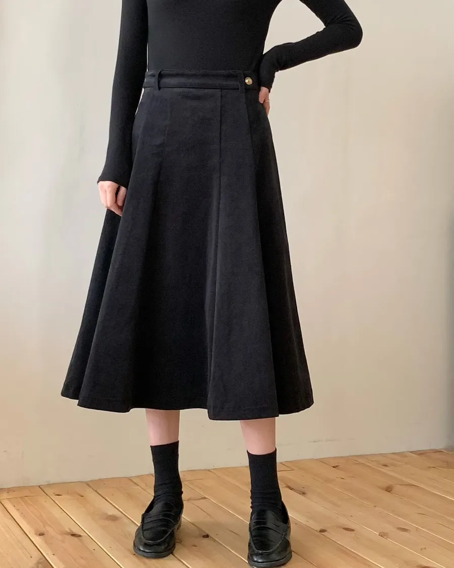 正韓 Nature 韓系燈芯絨高腰A字中長裙
