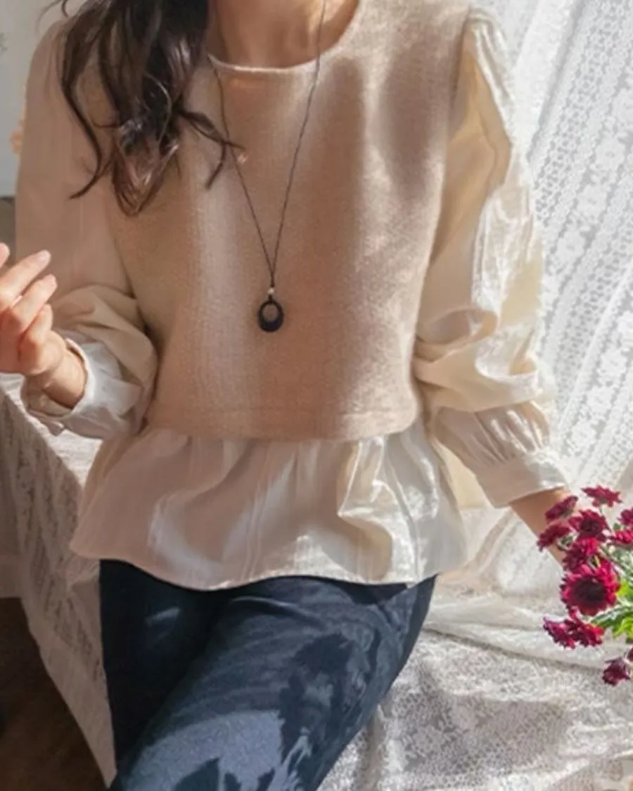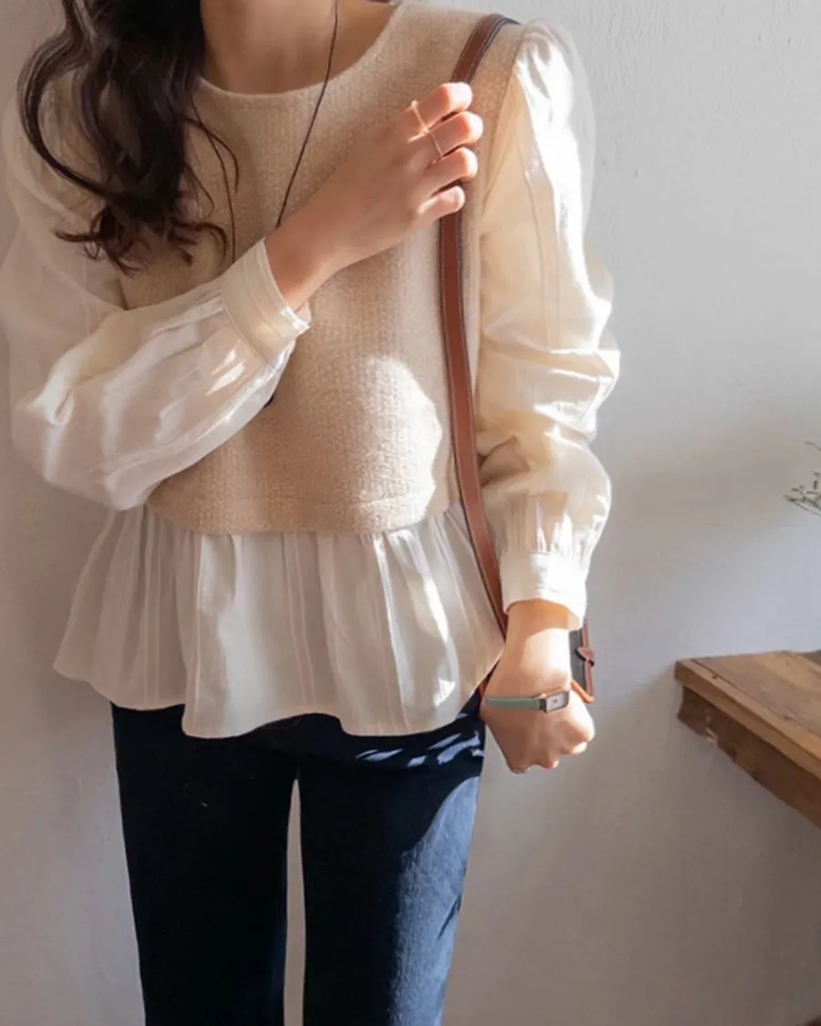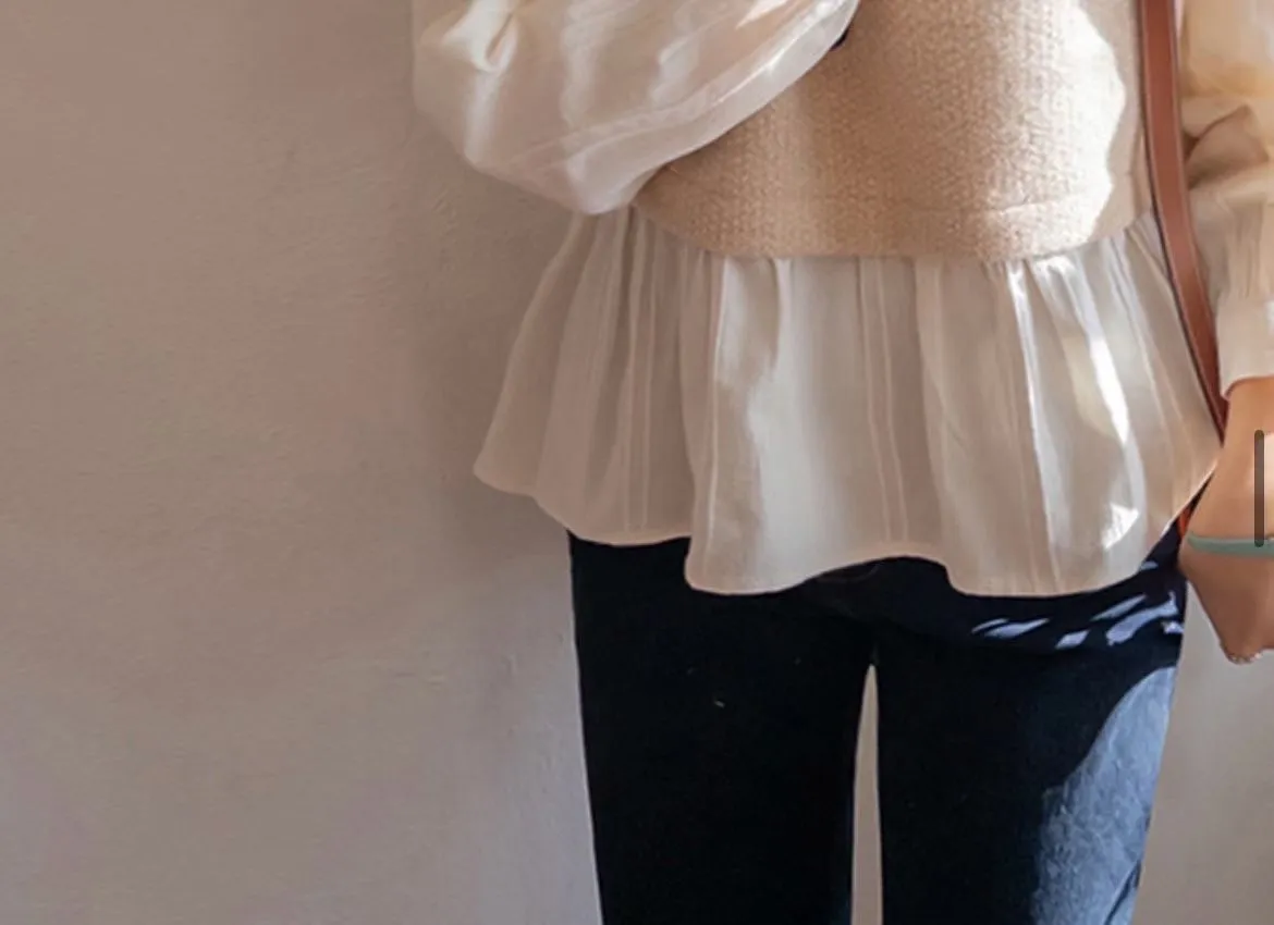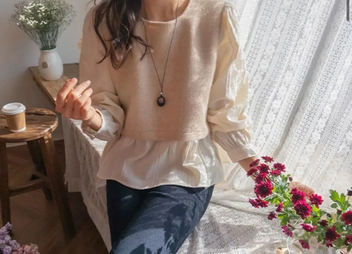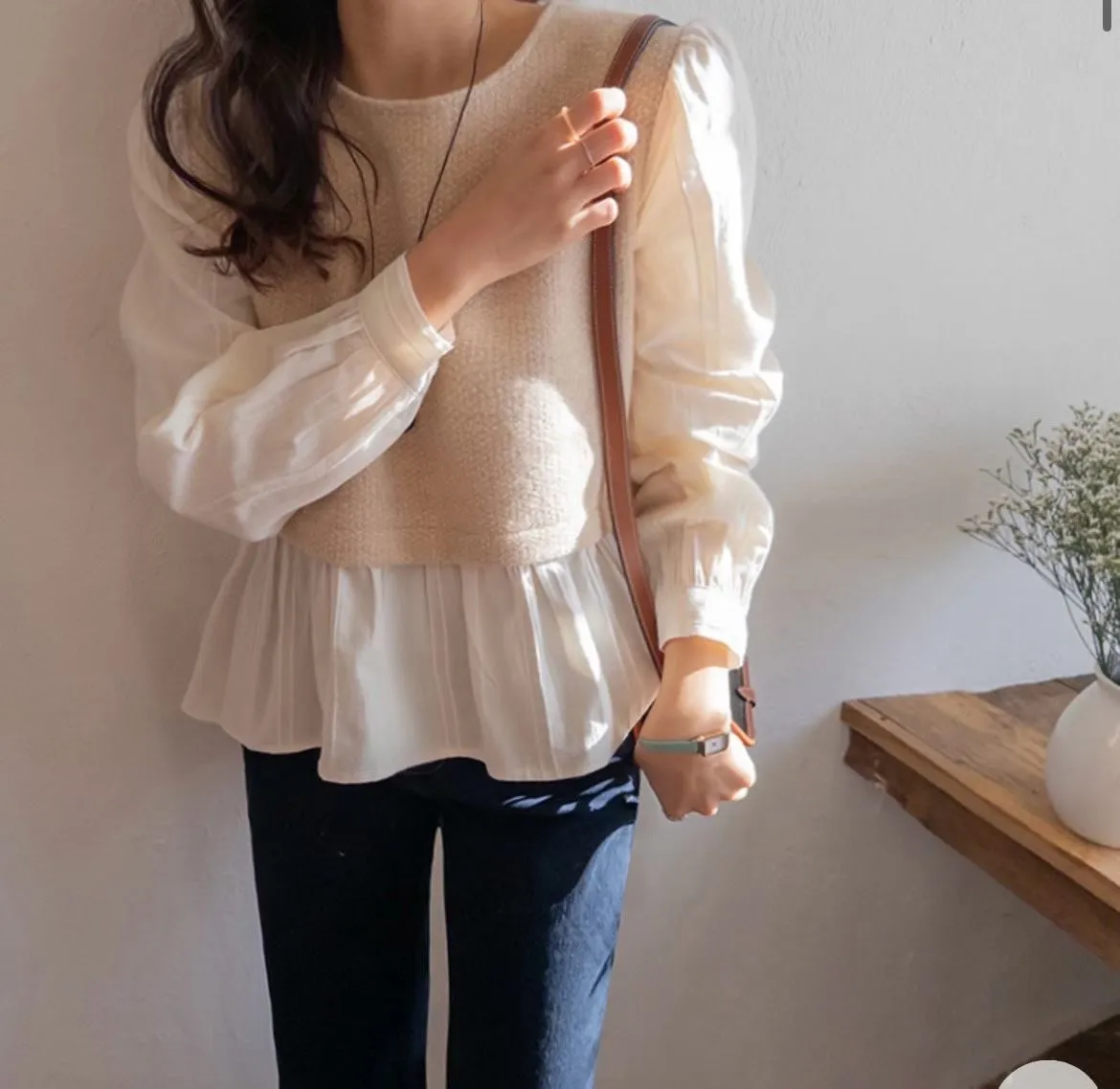 #韓國服飾 #假兩件上衣 #泡泡袖 #氣質穿搭 #韓系穿搭