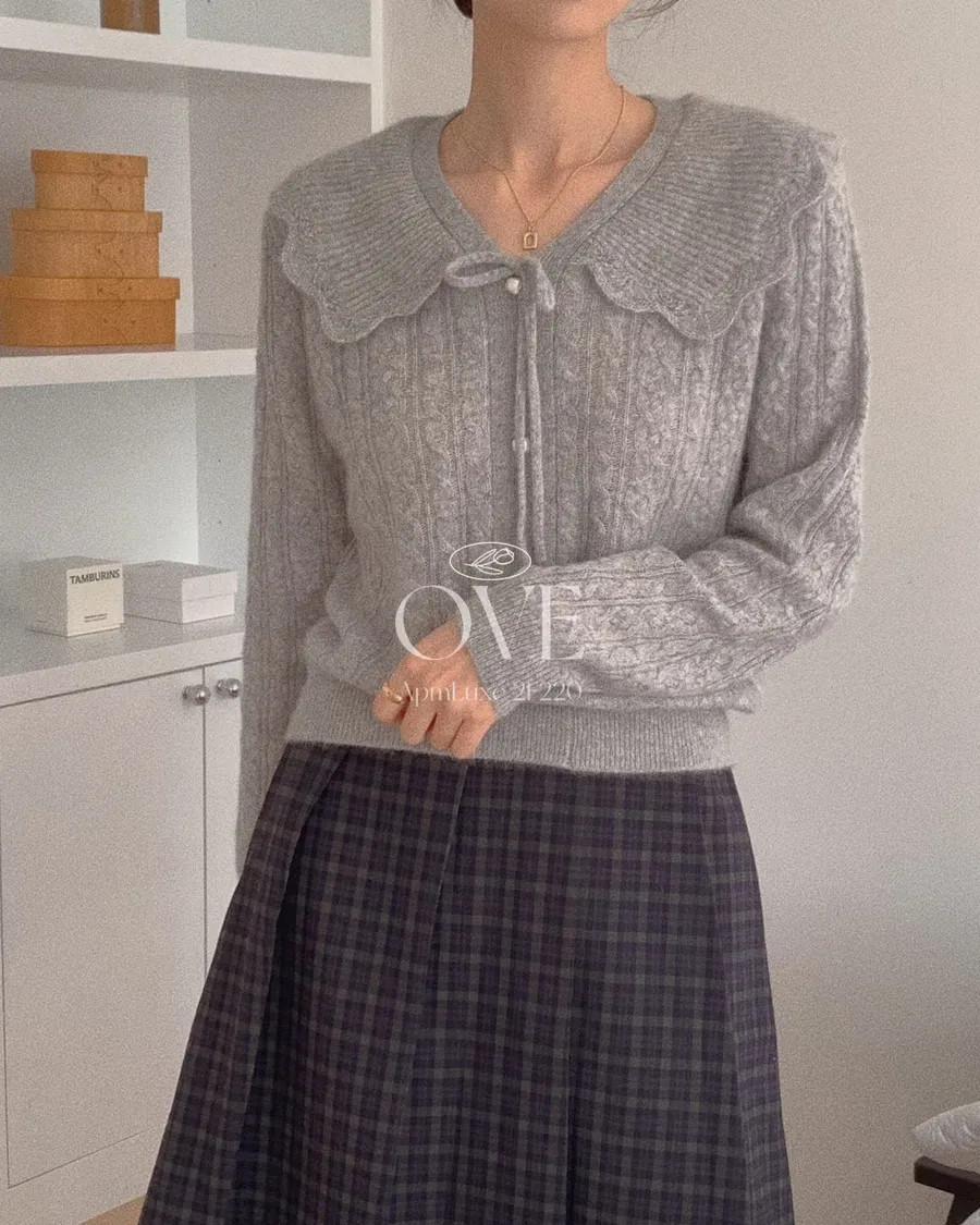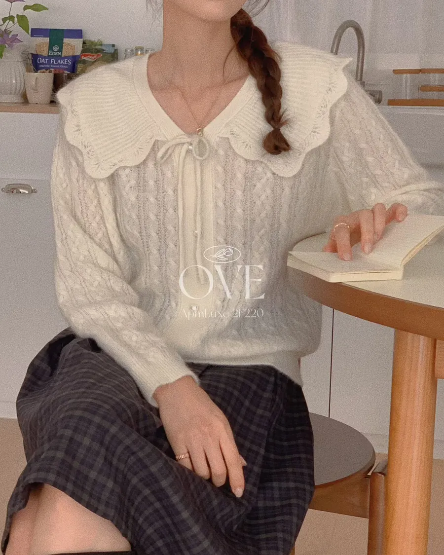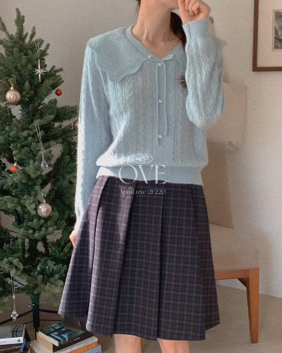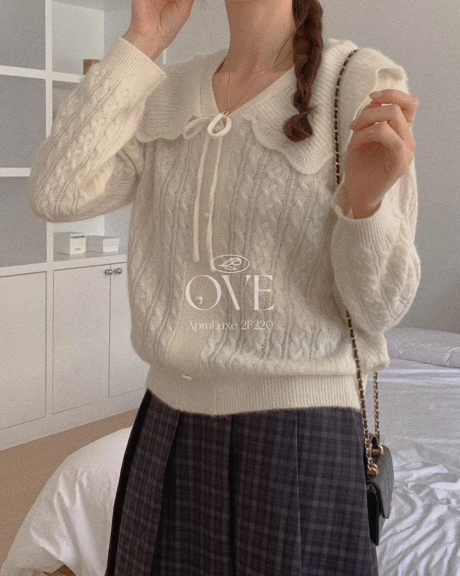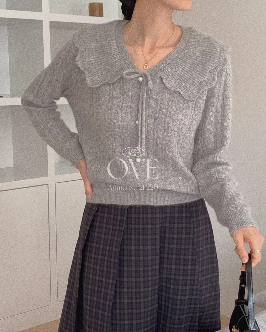 具有甜美的娃娃領和氣質的珍珠鈕釦