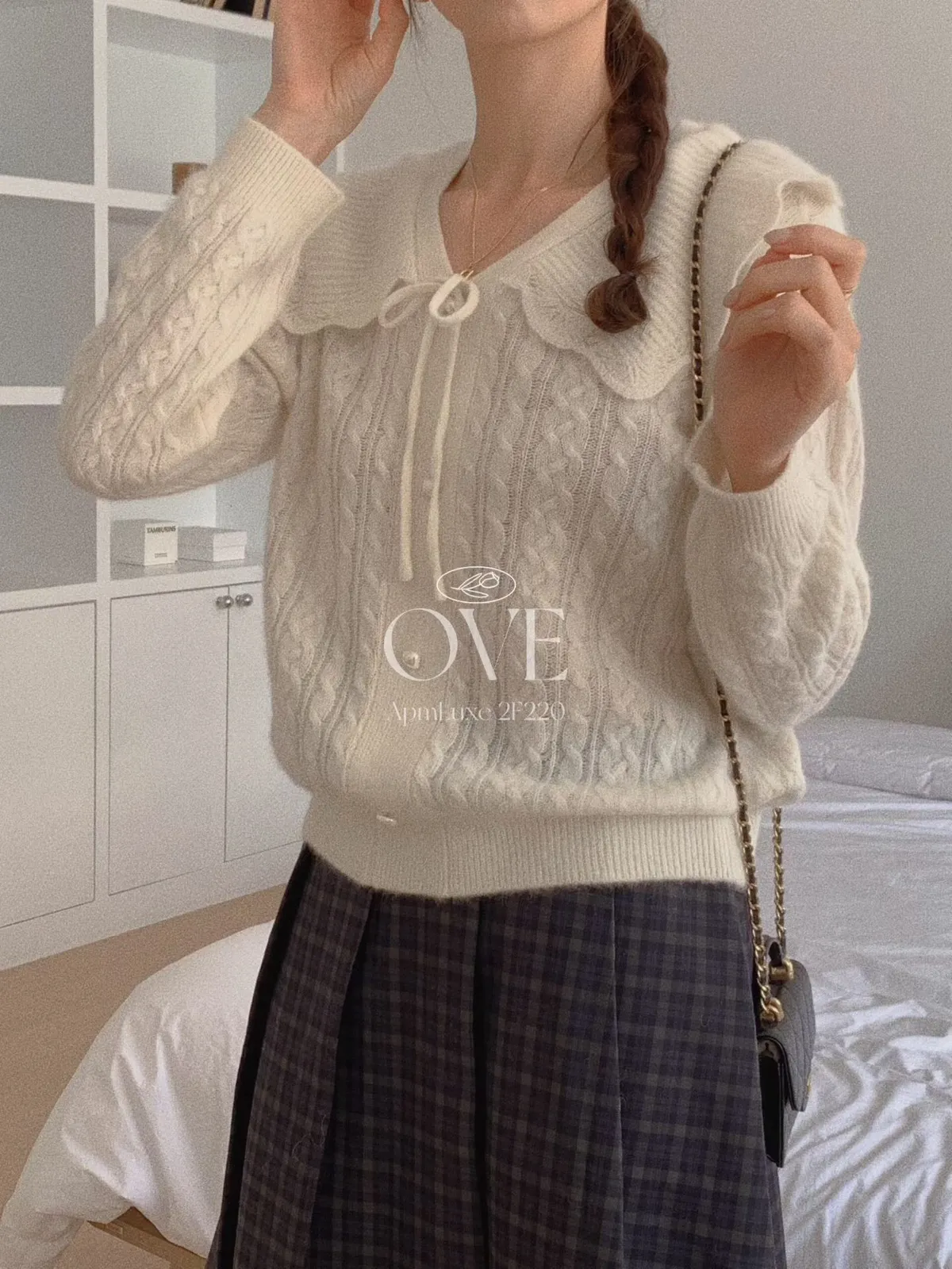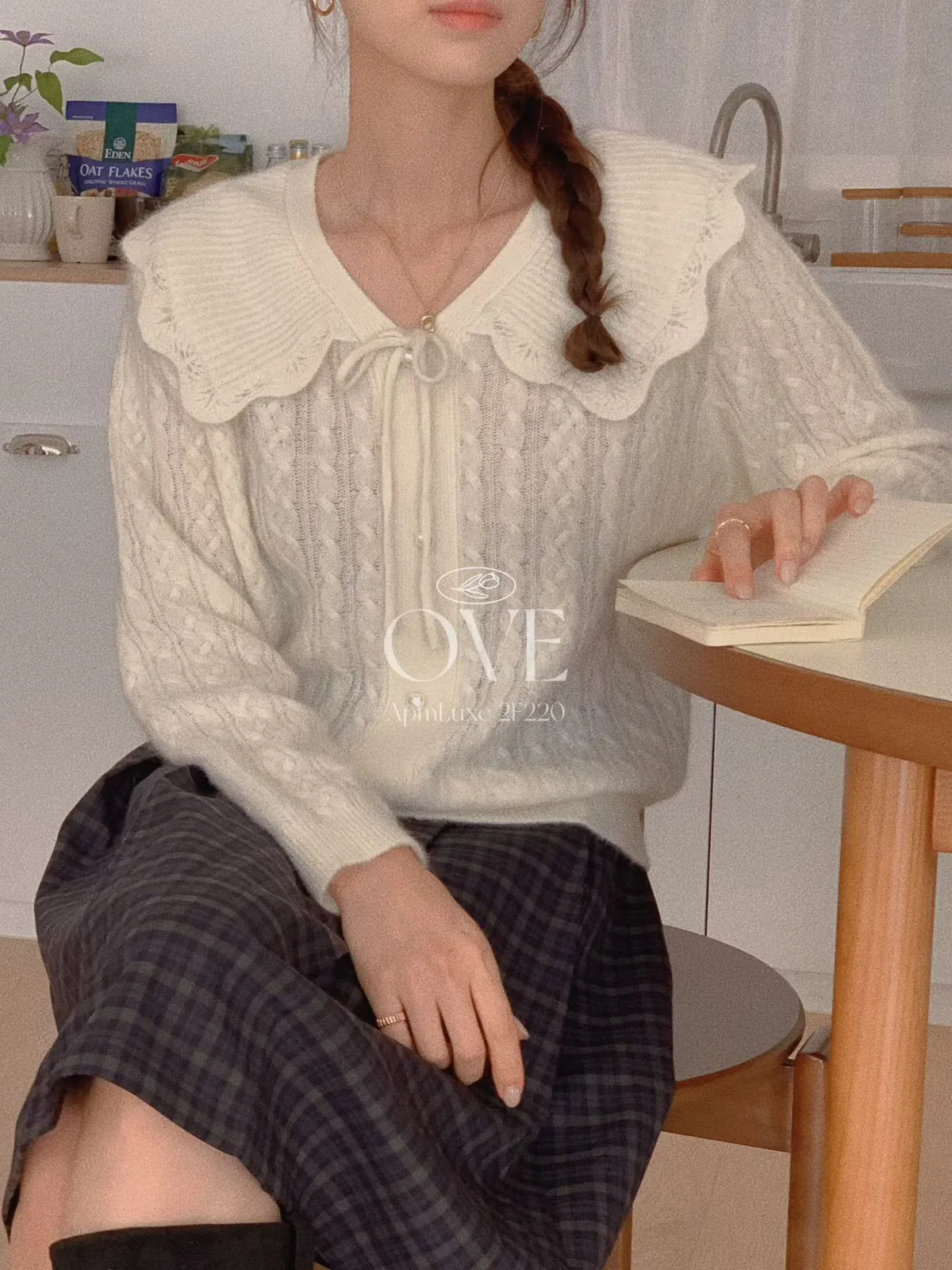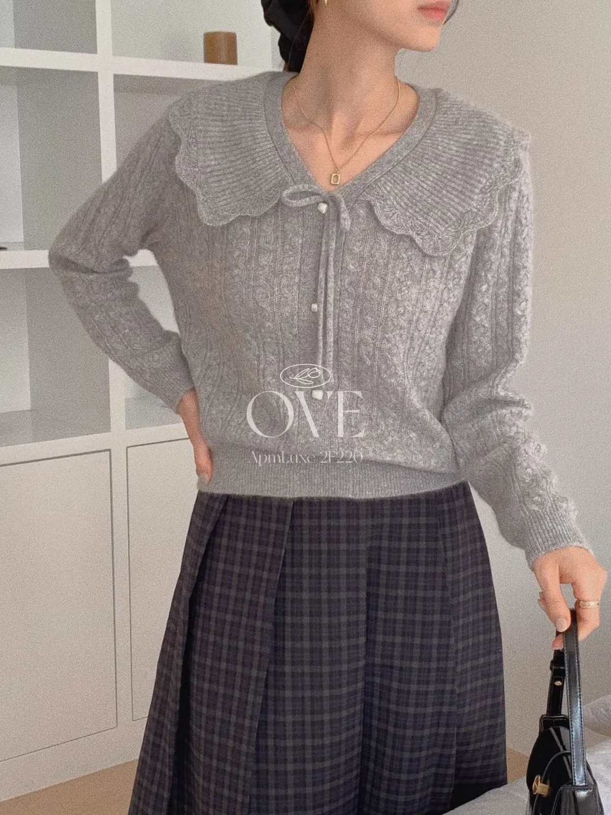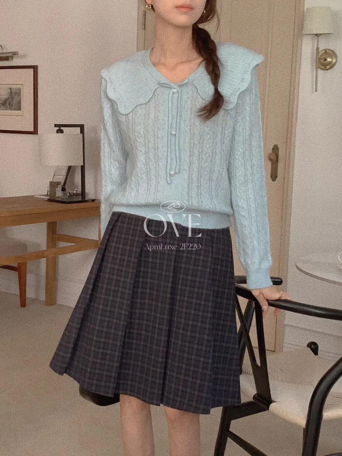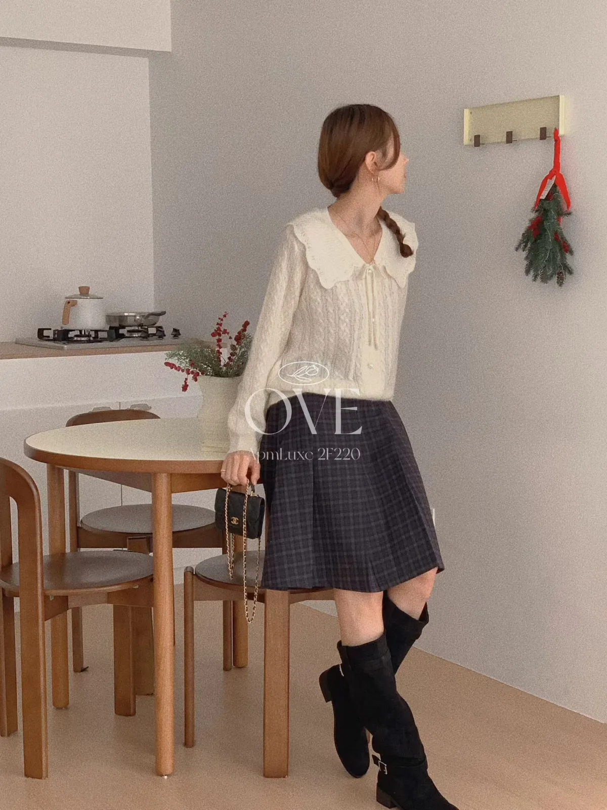 具有甜美的娃娃領和氣質的珍珠鈕釦