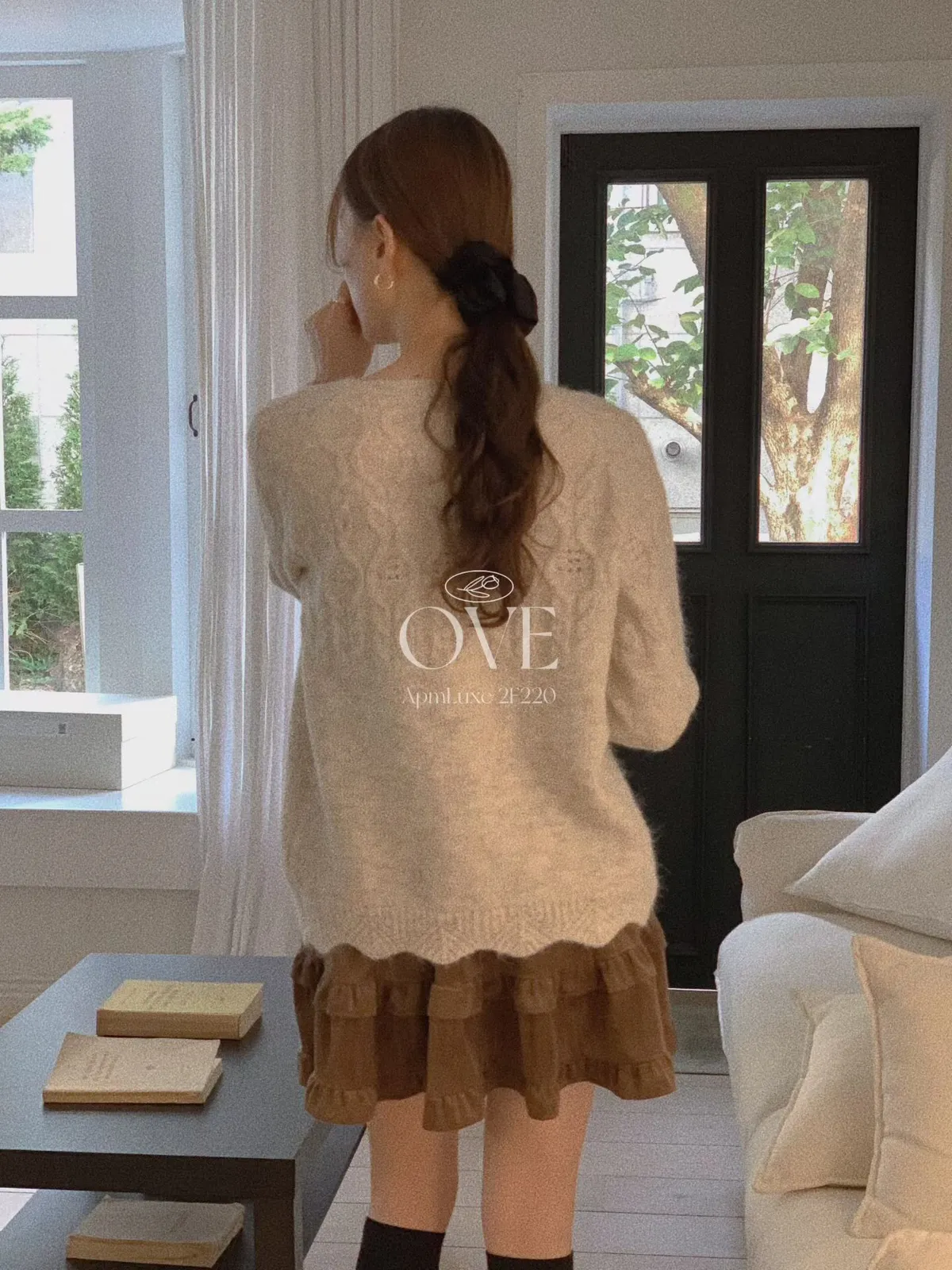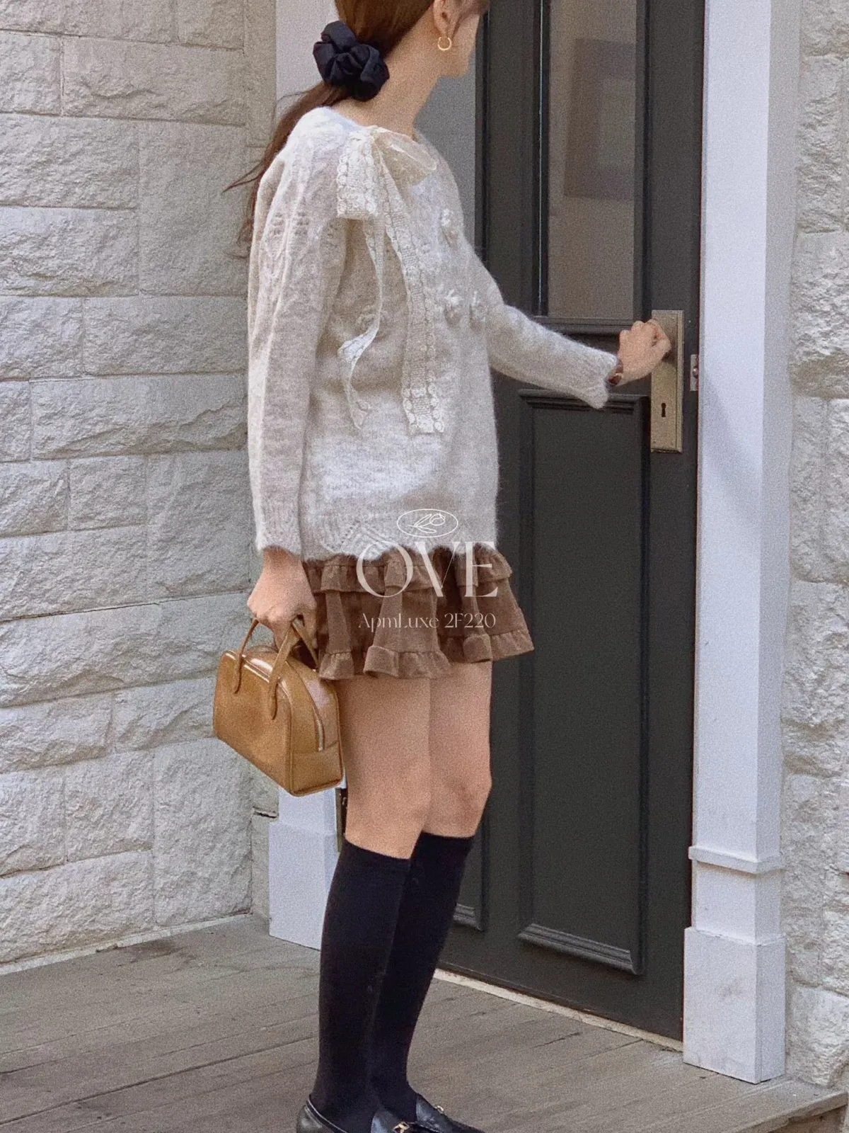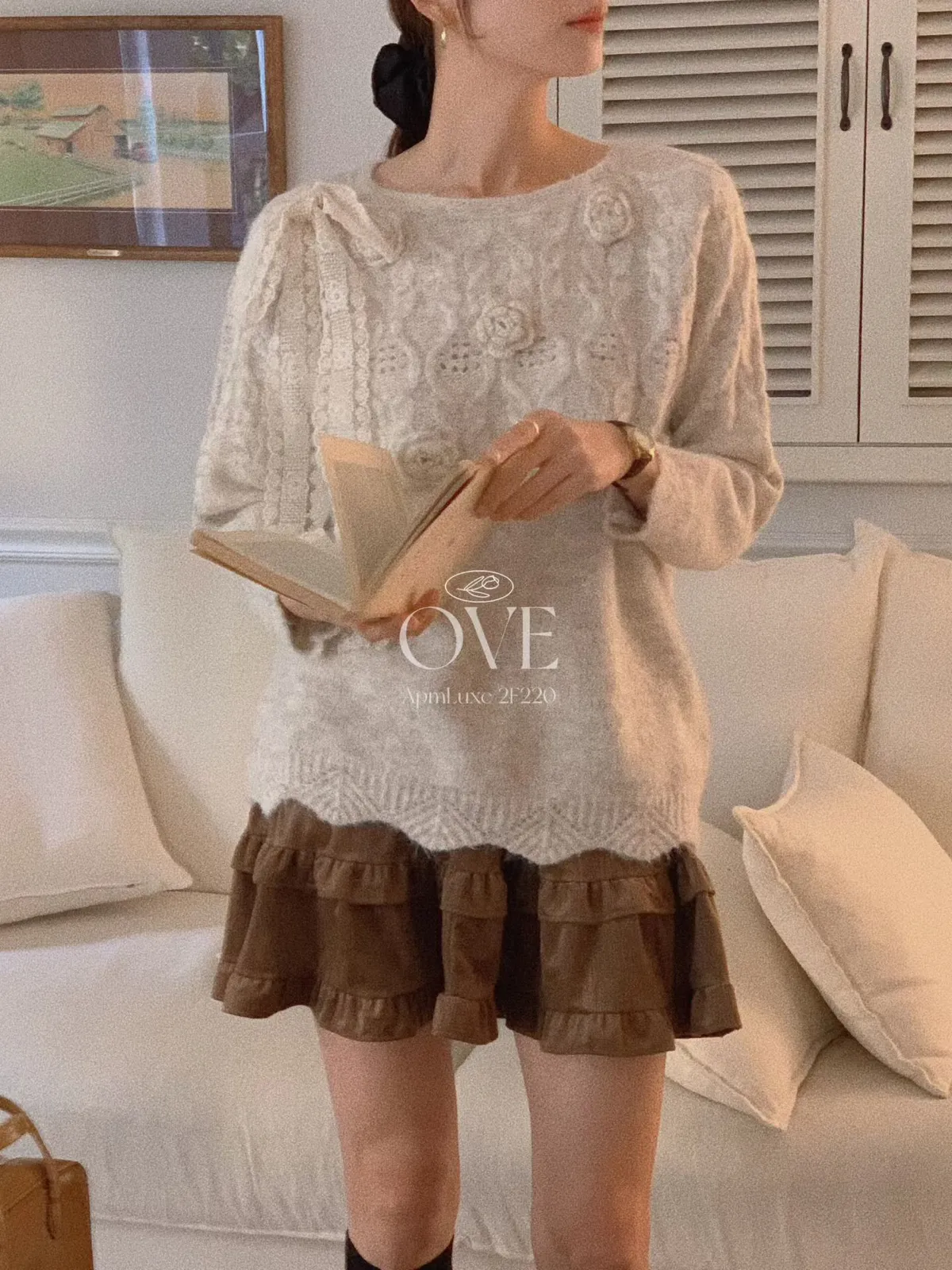 正韓 Nature立體花朵蕾絲蝴蝶結綁帶針織