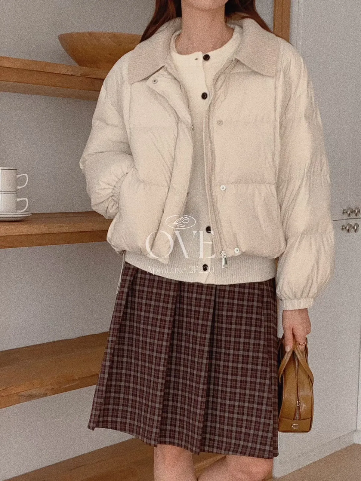 正韓Nature 立體羅紋大翻領短版羽絨外套