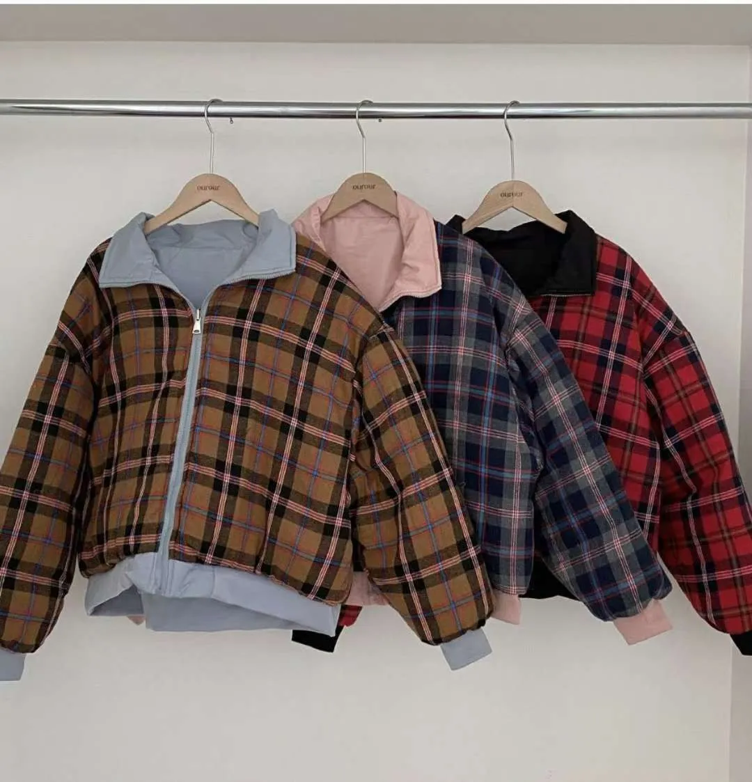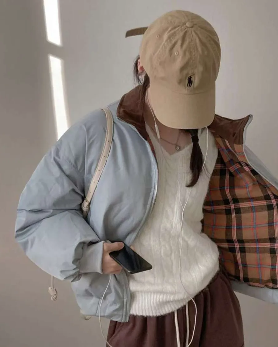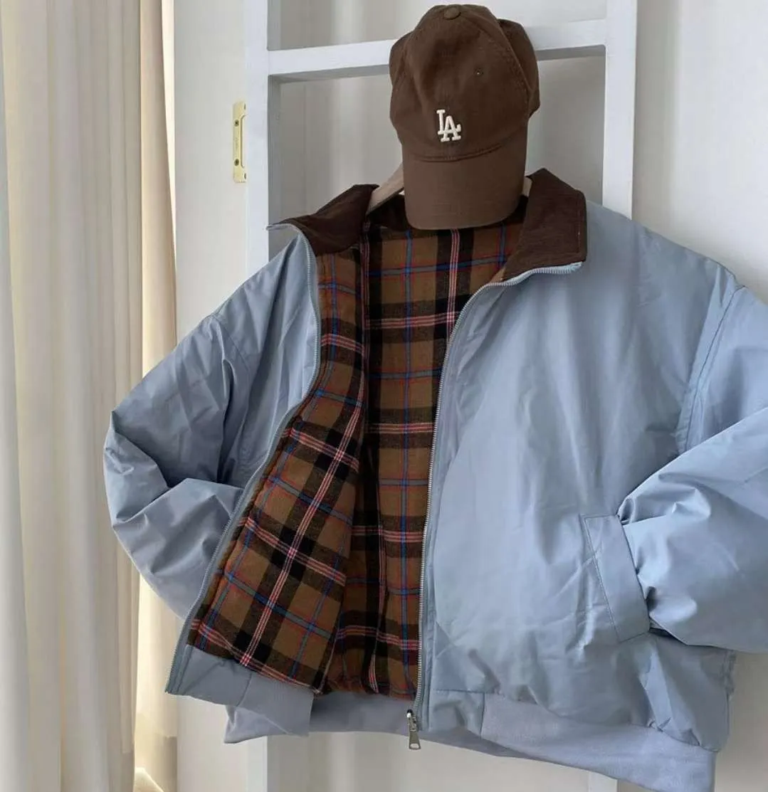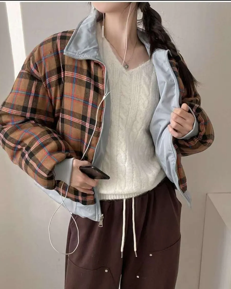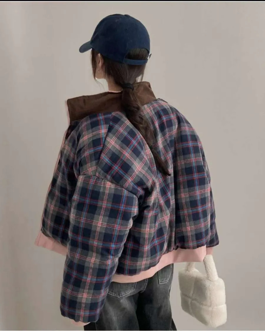 另一面則是格紋圖案,提供兩種不同的穿搭選擇。