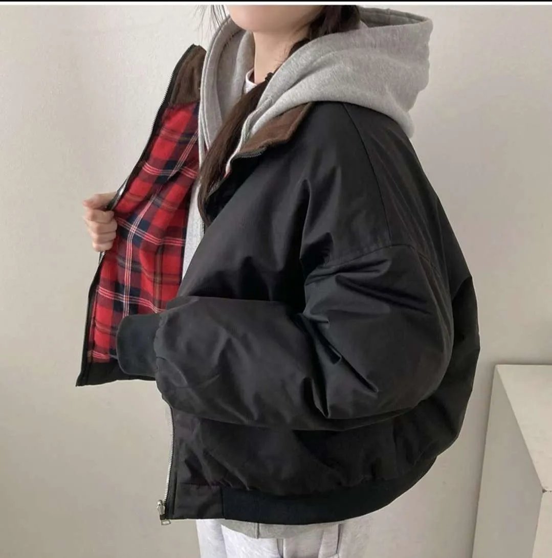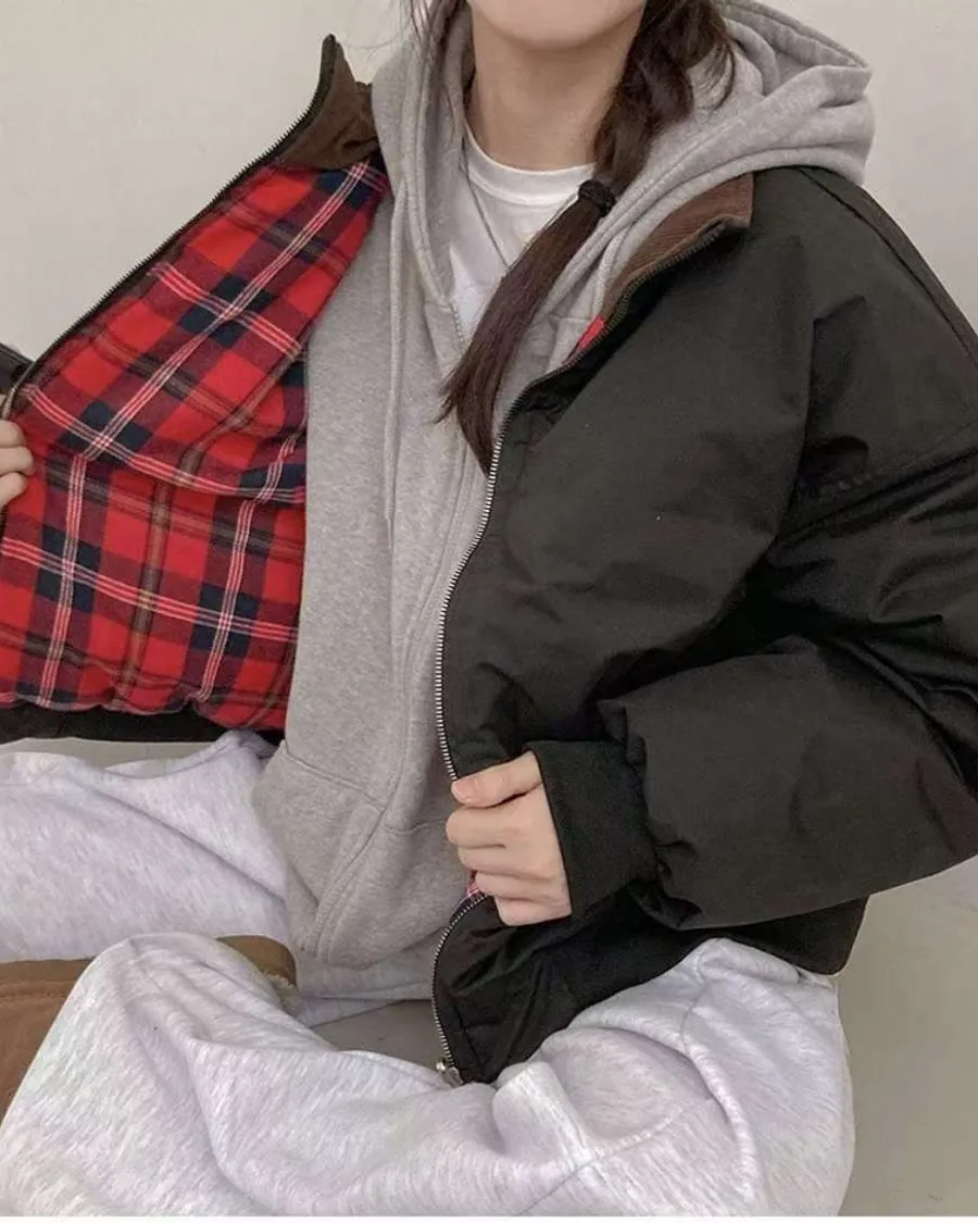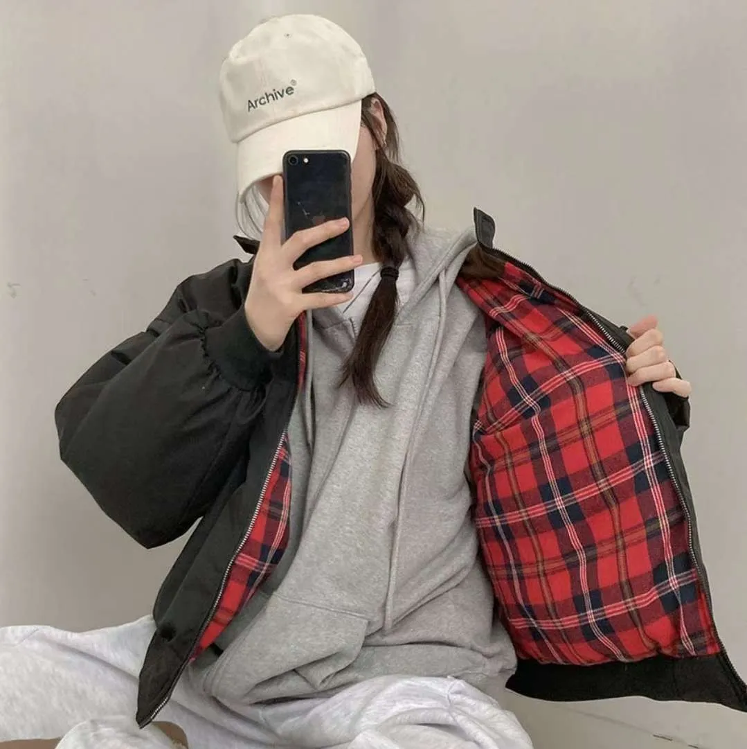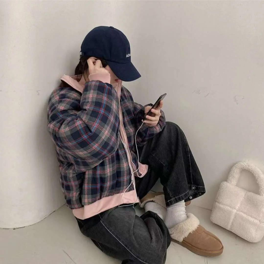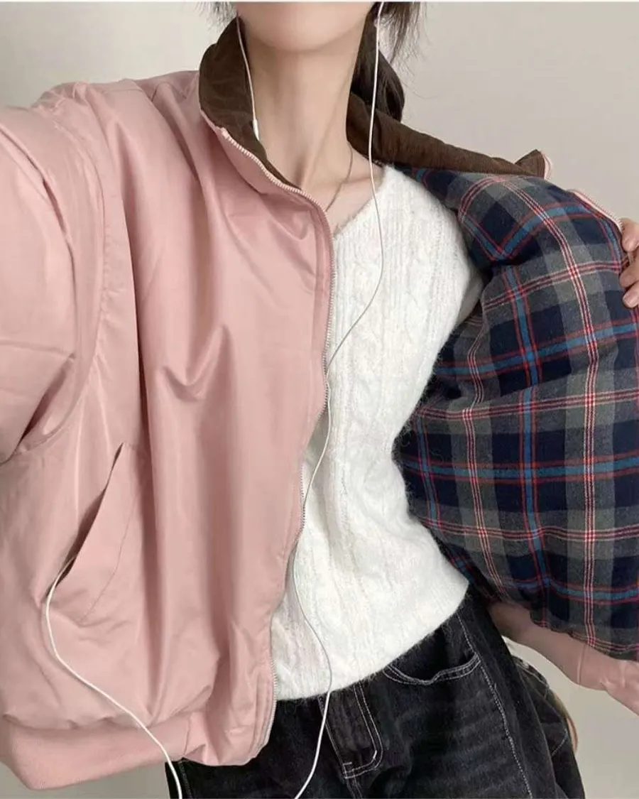 另一面則是格紋圖案,提供兩種不同的穿搭選擇。