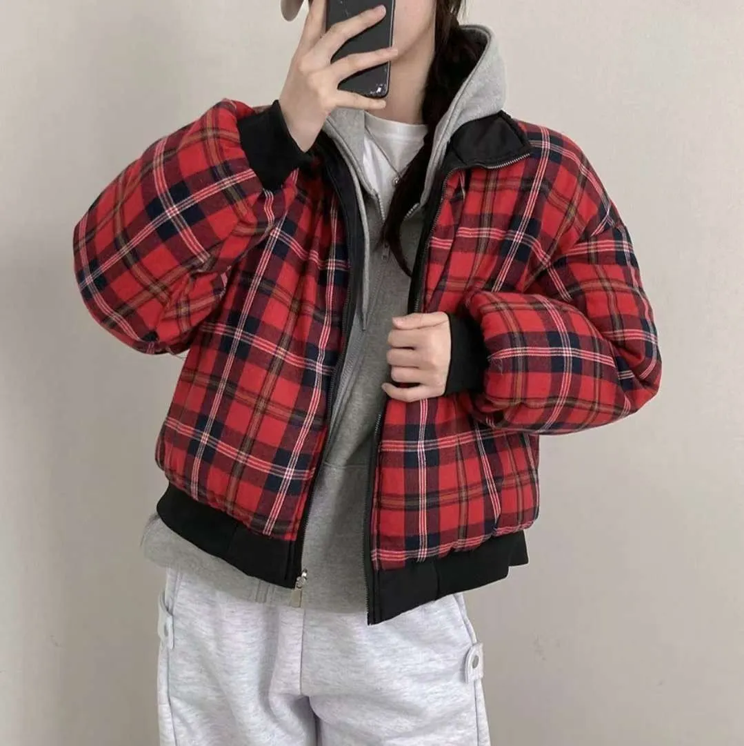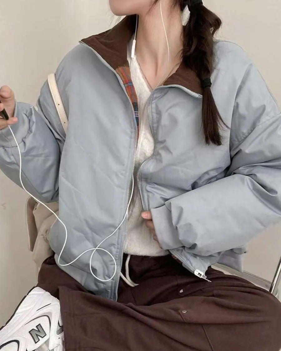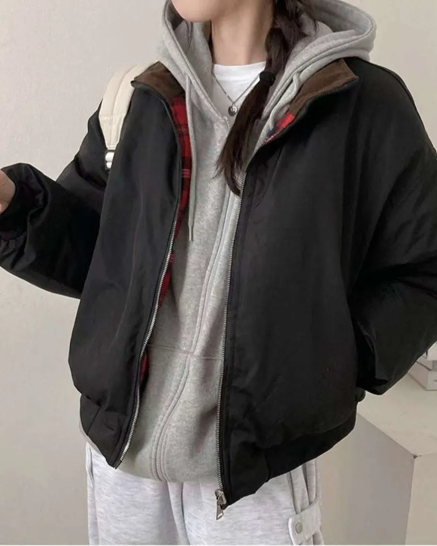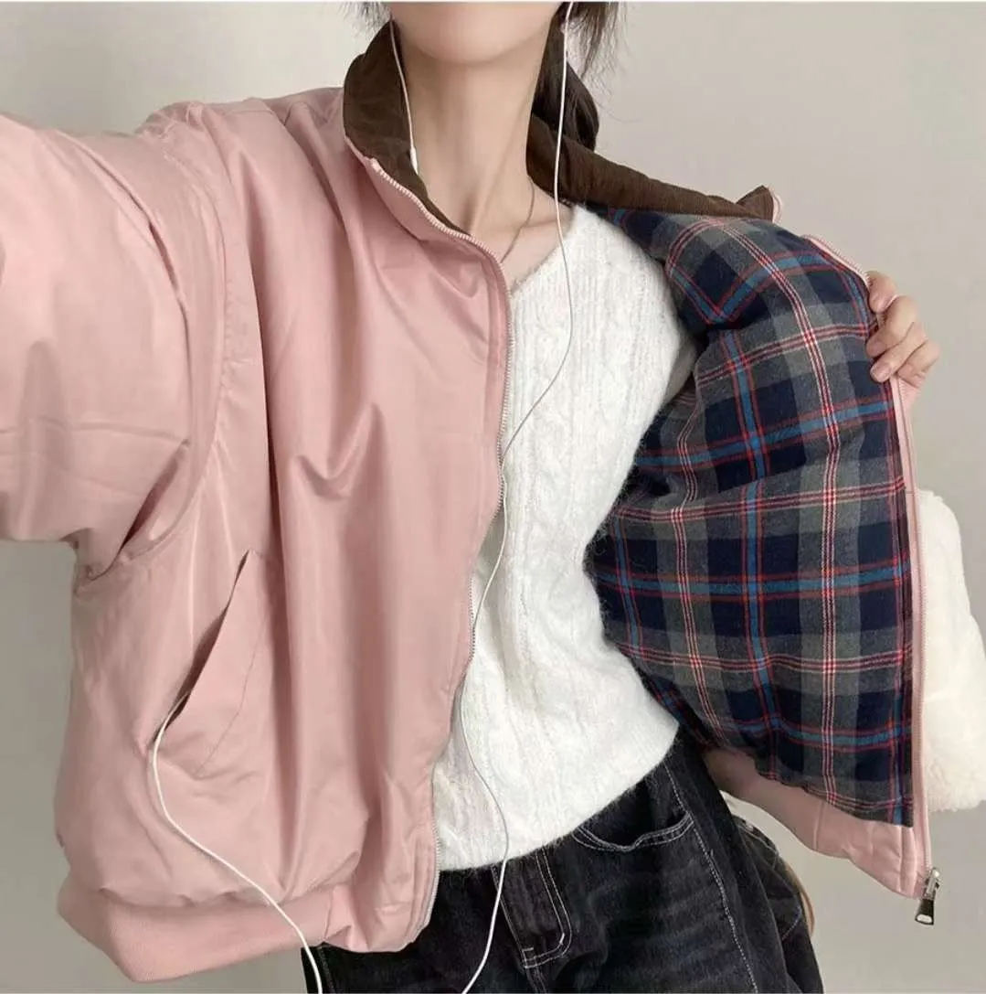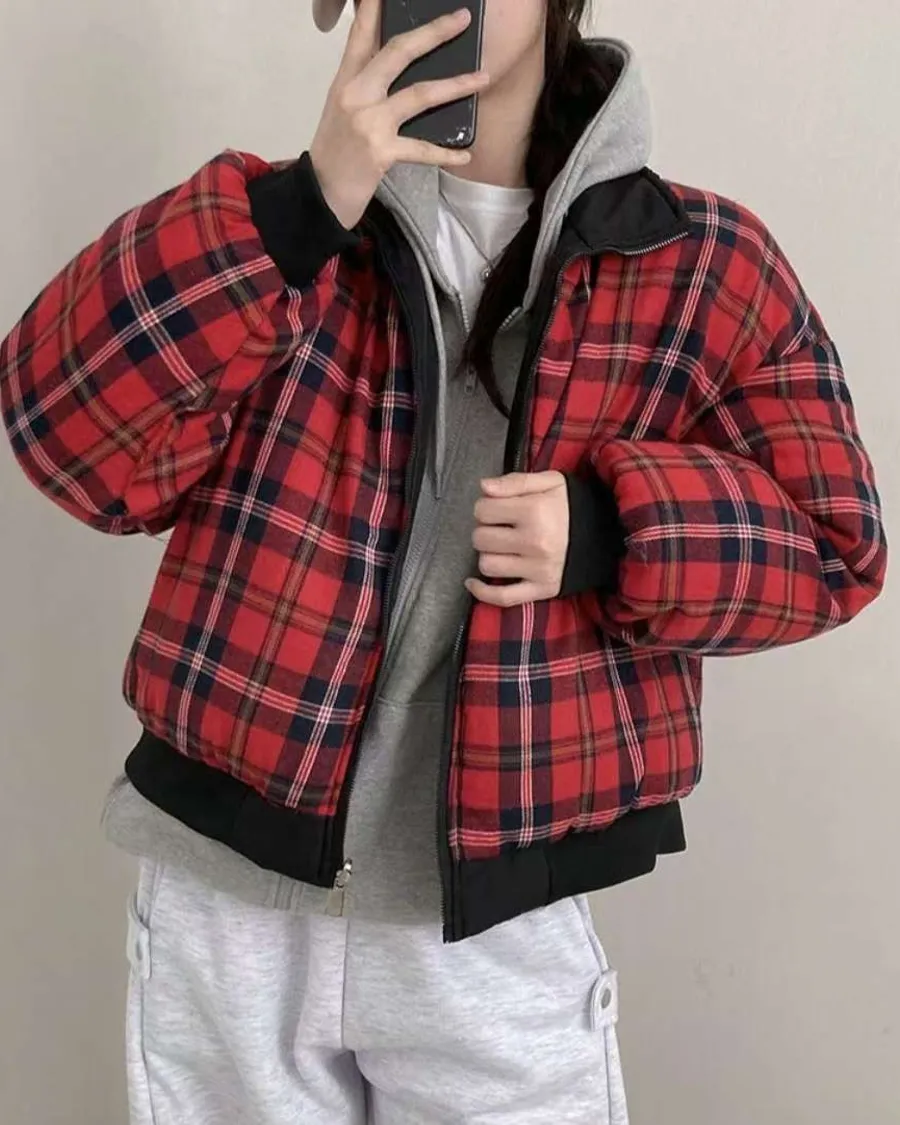 另一面則是格紋圖案,提供兩種不同的穿搭選擇。