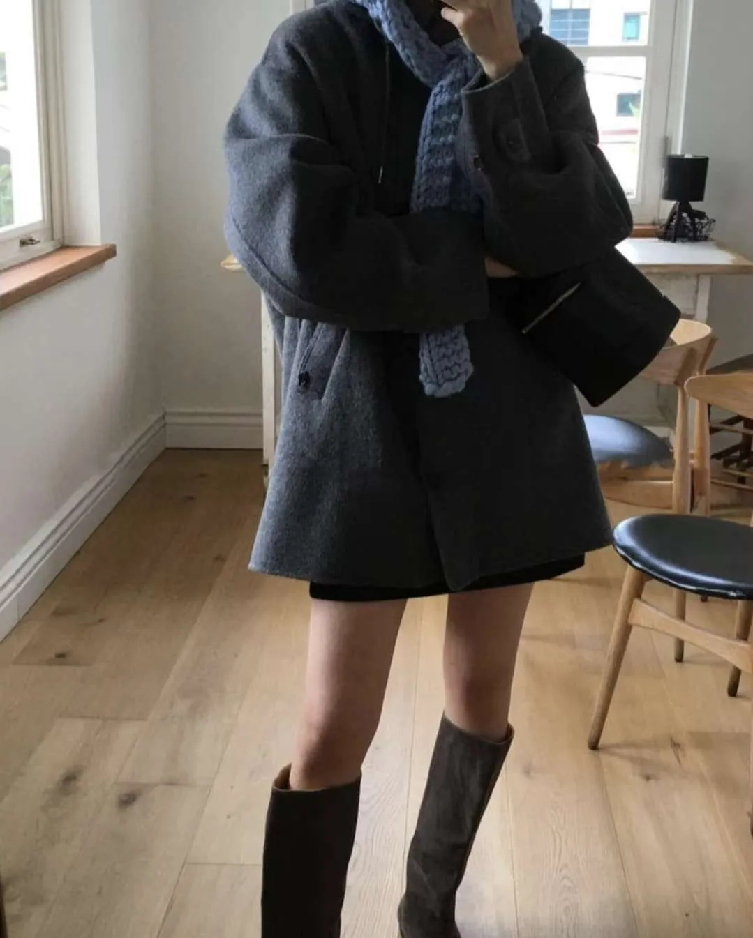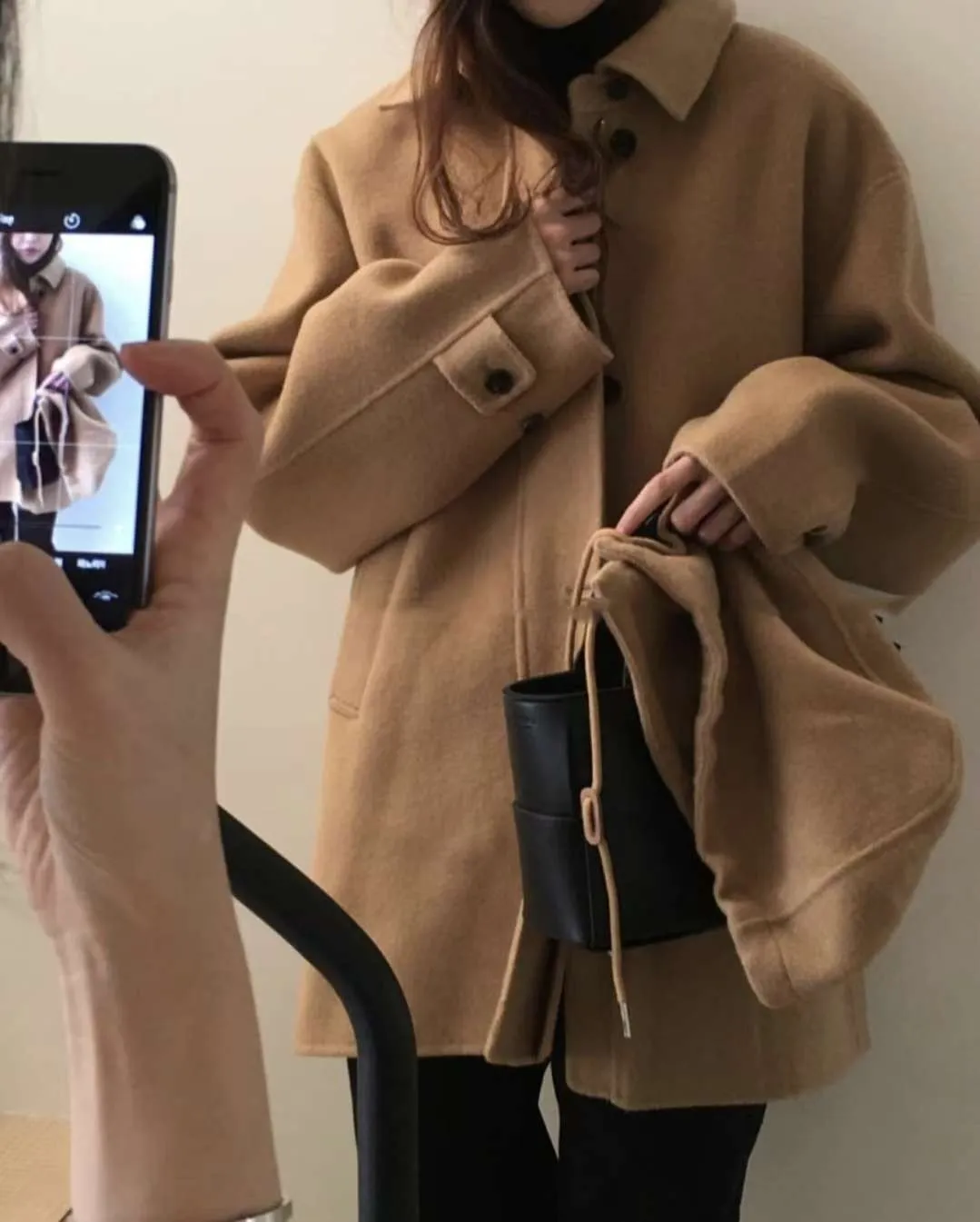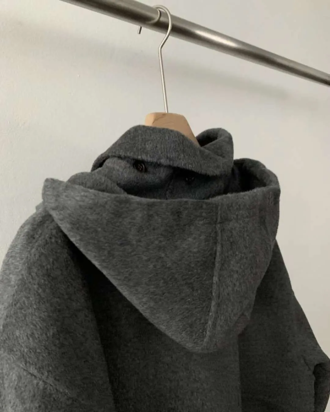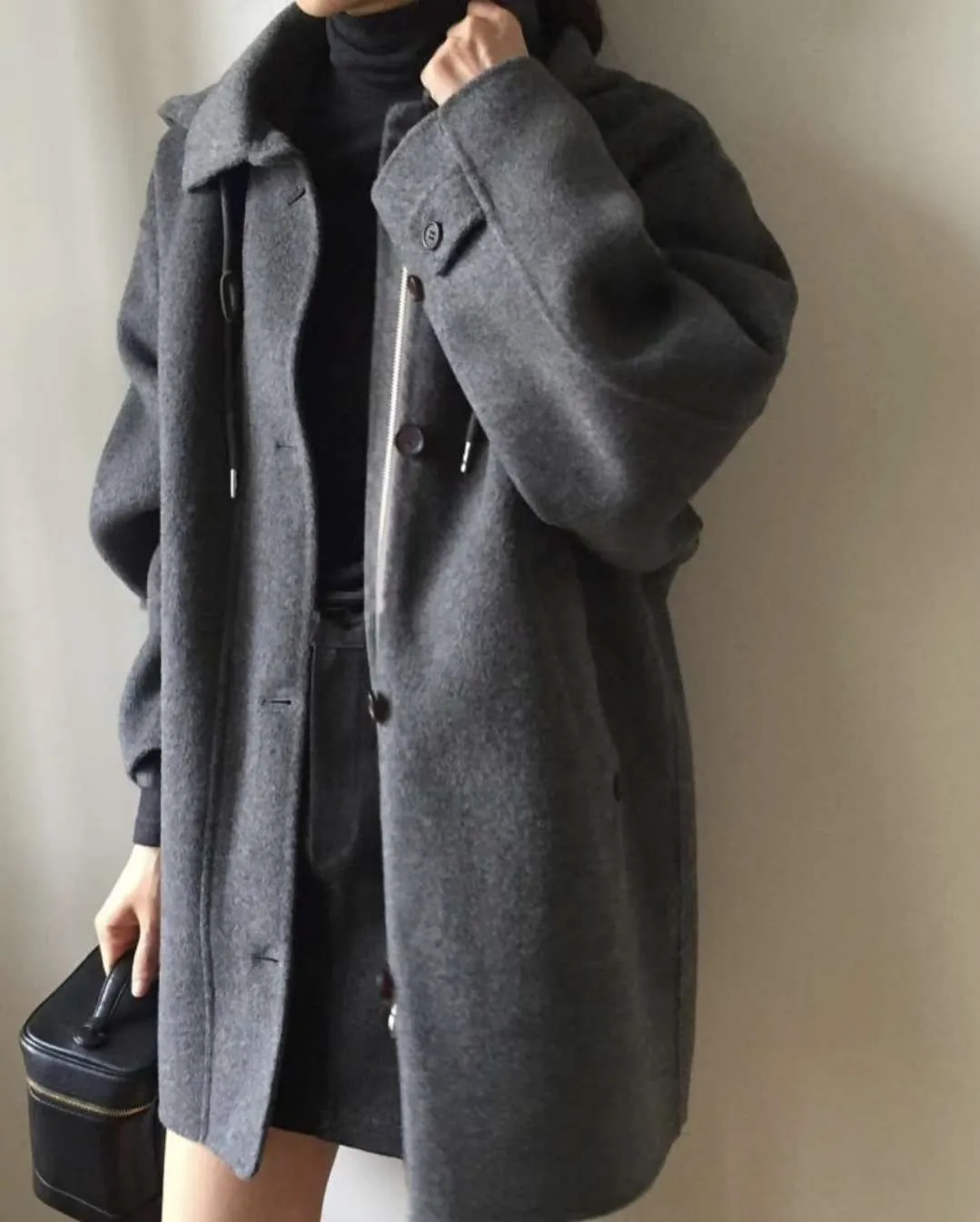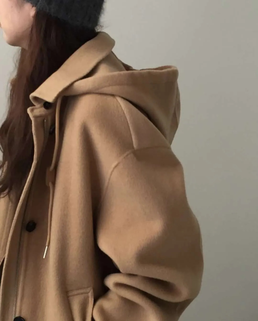 正韓寬鬆版型的連帽短大衣