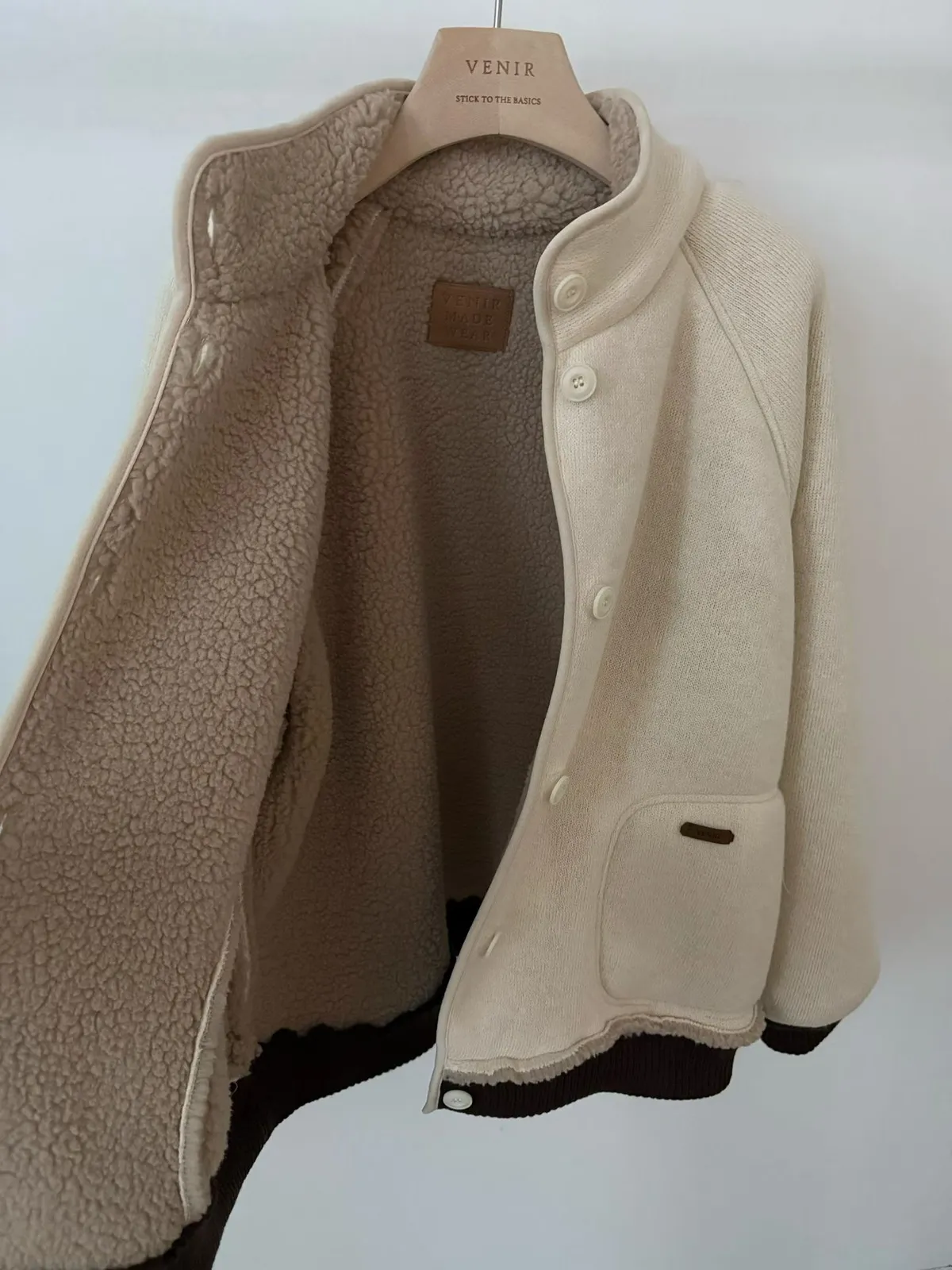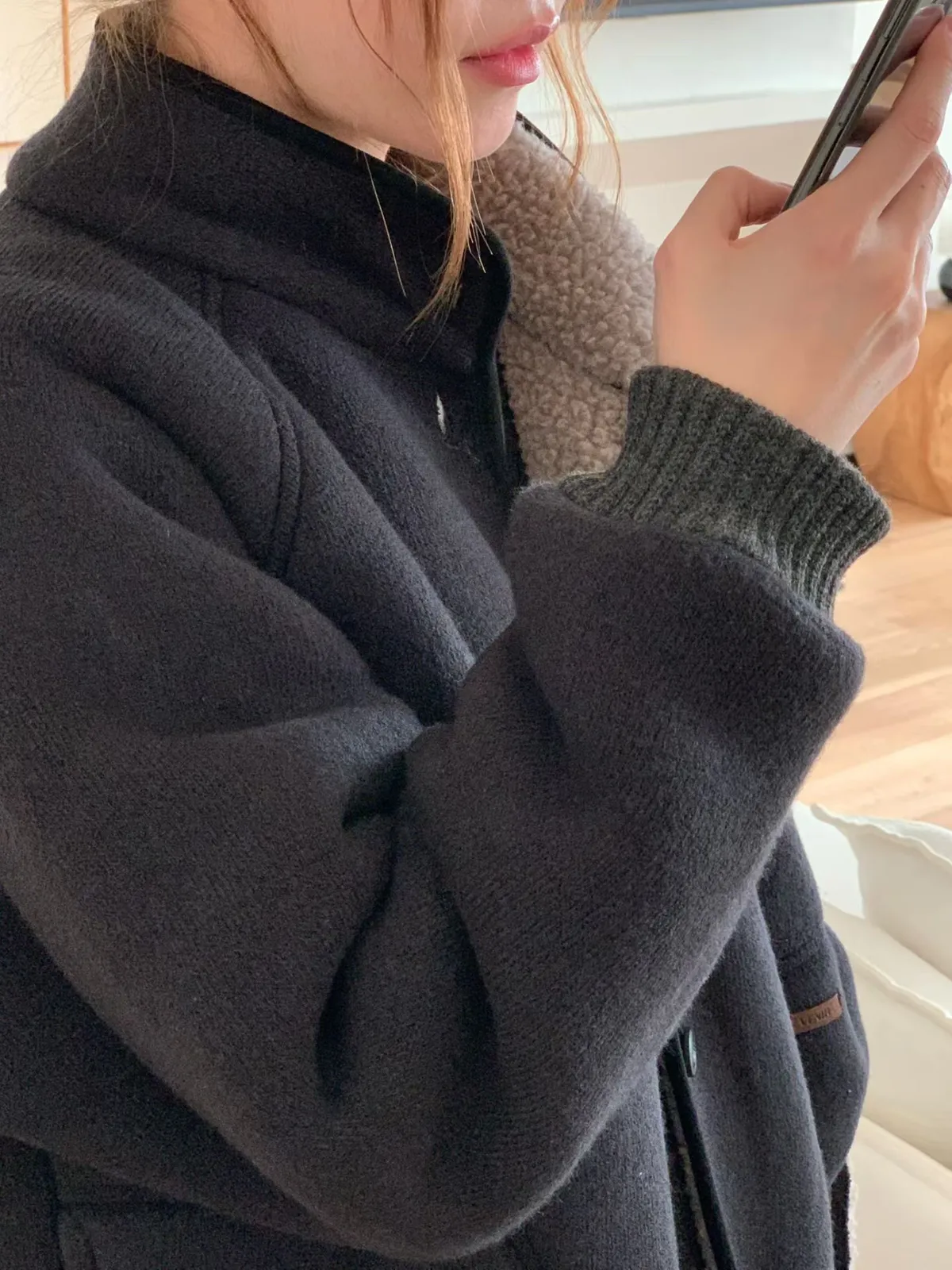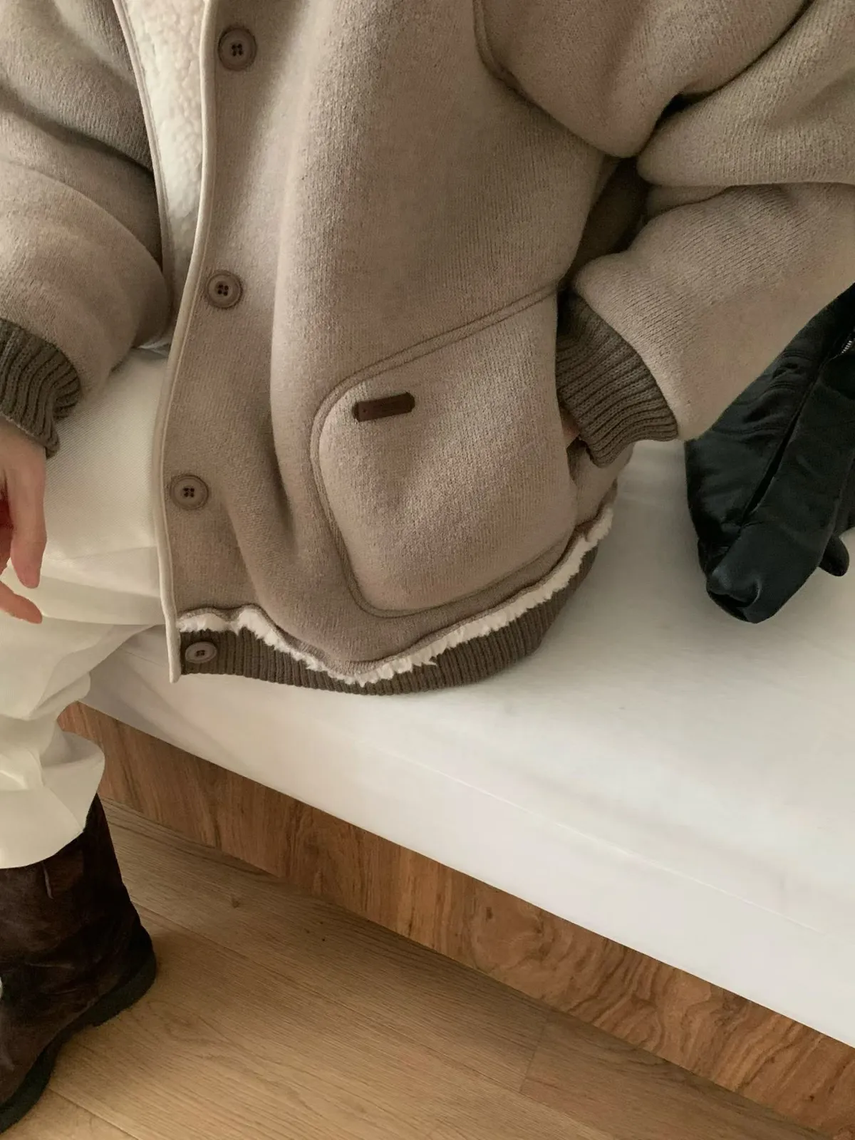 • 雙面設計:外層溫柔軟毛呢、內層厚實羊羔絨,穿起來超級保暖。