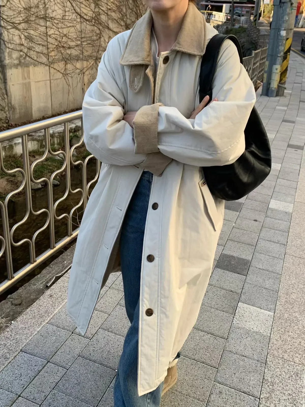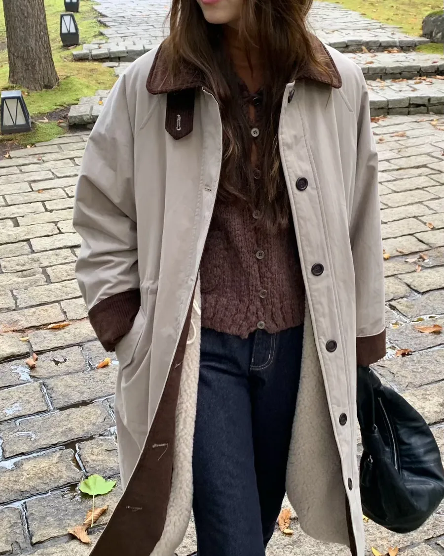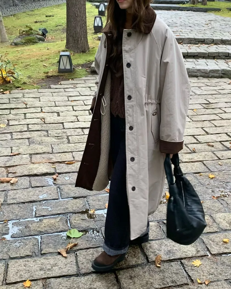 剪裁以「微寬鬆長版」打造,不壓身形、不挑體型,輕鬆穿出韓國街拍感,是今冬最不容錯過的百搭大衣。
