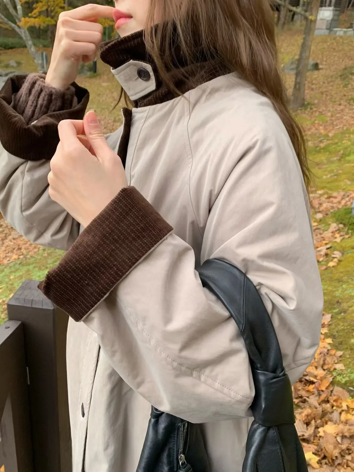 #奶油色外套 #深黑色大衣