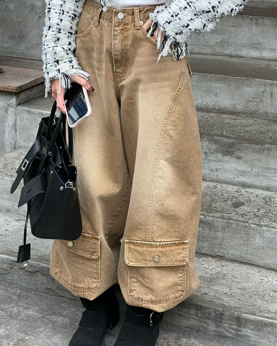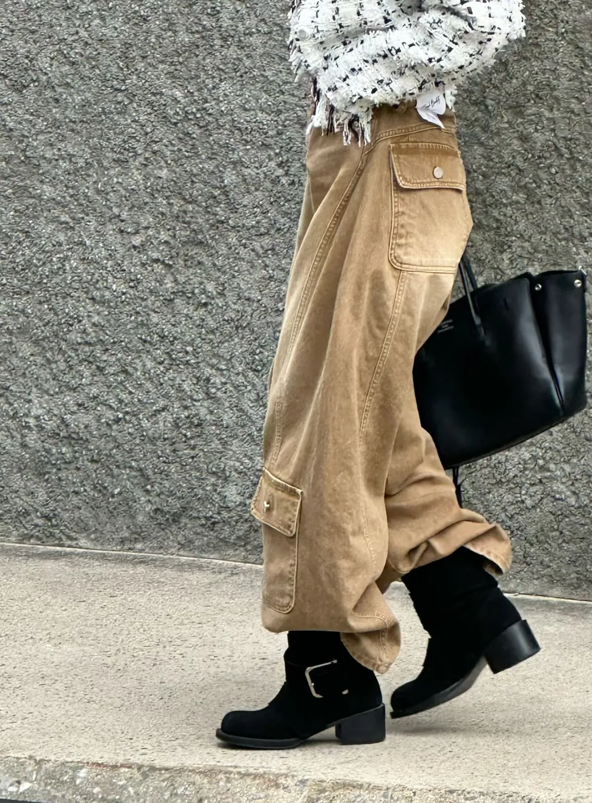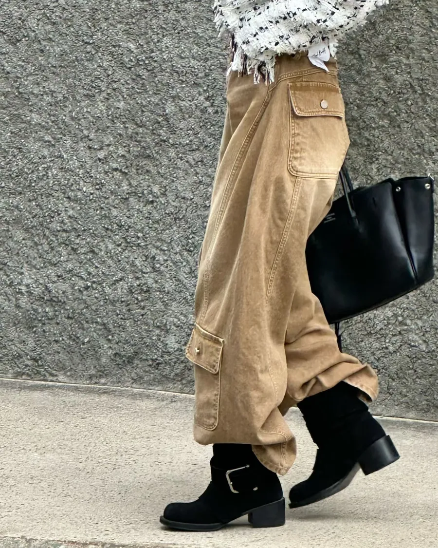 走路會飄、拍照很上鏡,完全是韓系穿搭必備褲型。