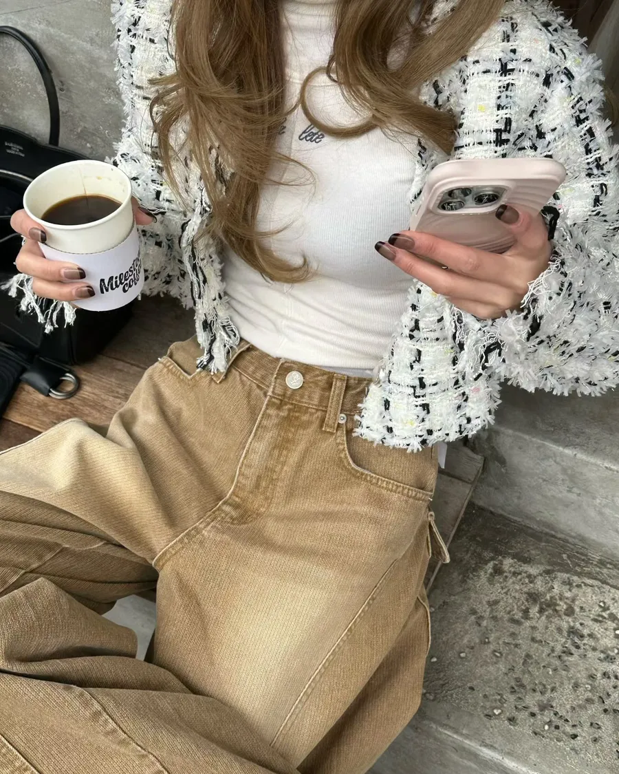 • 焦糖棕色:復古溫柔質感,搭白色毛衣、花呢外套都美